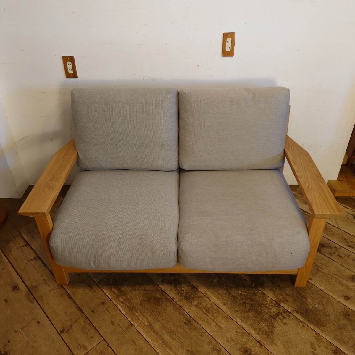 木のぬくもりが感じられる木製フレームの2シーターソファ。