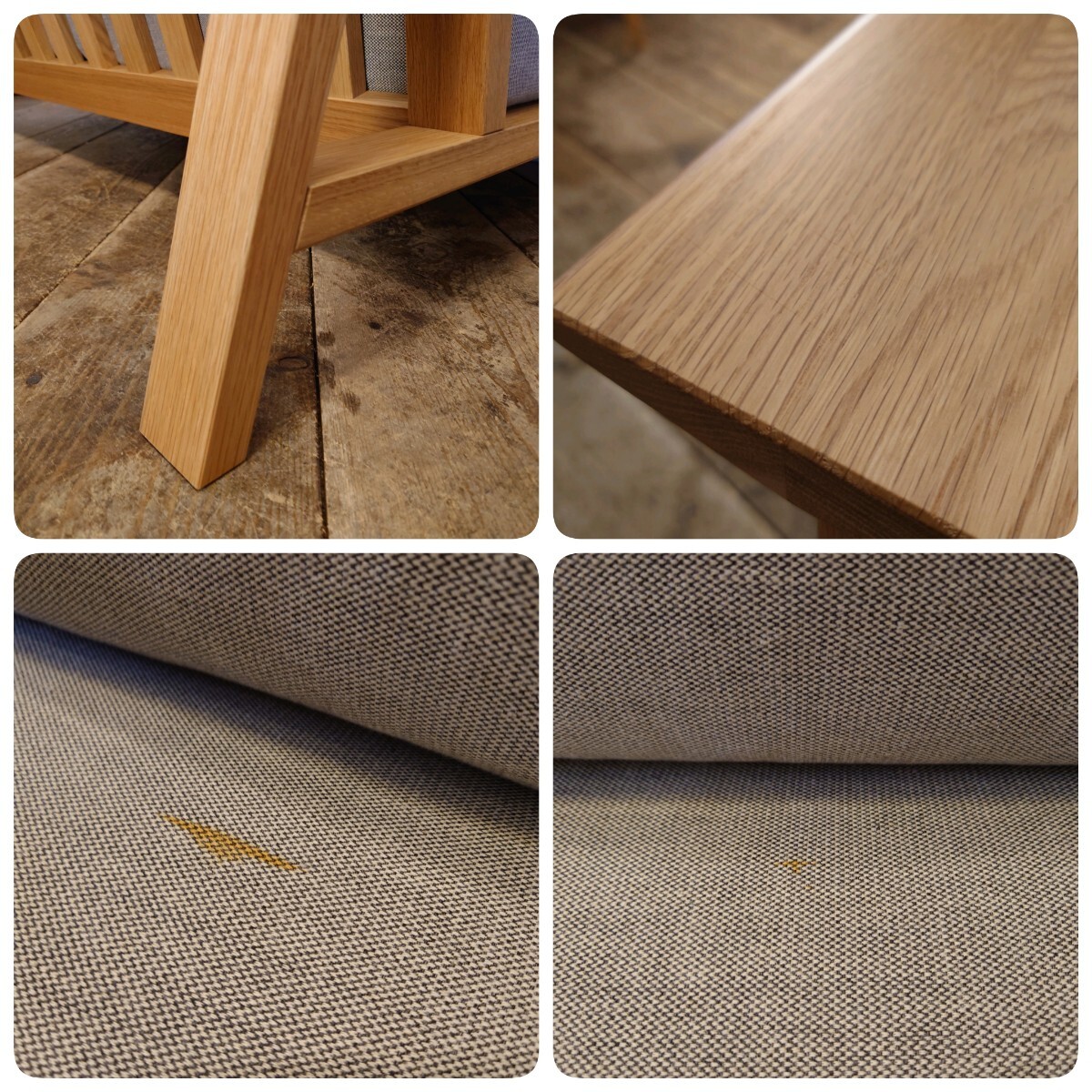 ファブリックに汚れやくすみ、シミ、擦れ、擦れによる小さな引掛け傷、毛羽立ち等があります。