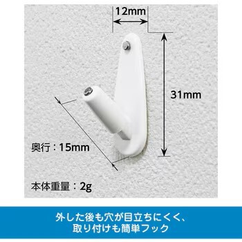 ・安全荷重:3㎏(石こうボード・ベニヤ)/6㎏(木桟・柱)