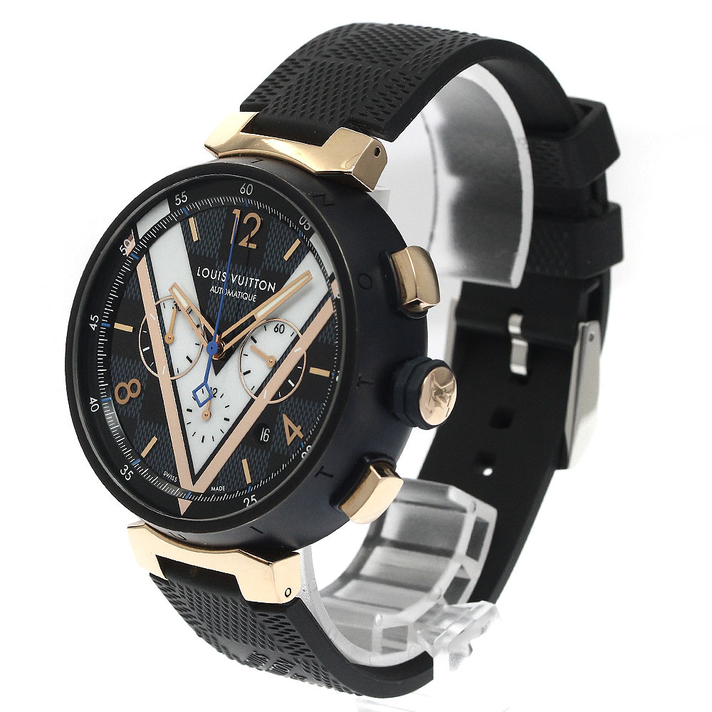 ルイ・ヴィトン LOUIS VUITTON QA090 タンブール ダミエコバルト クロノグラフ 自動巻き メンズ 良品 _883864