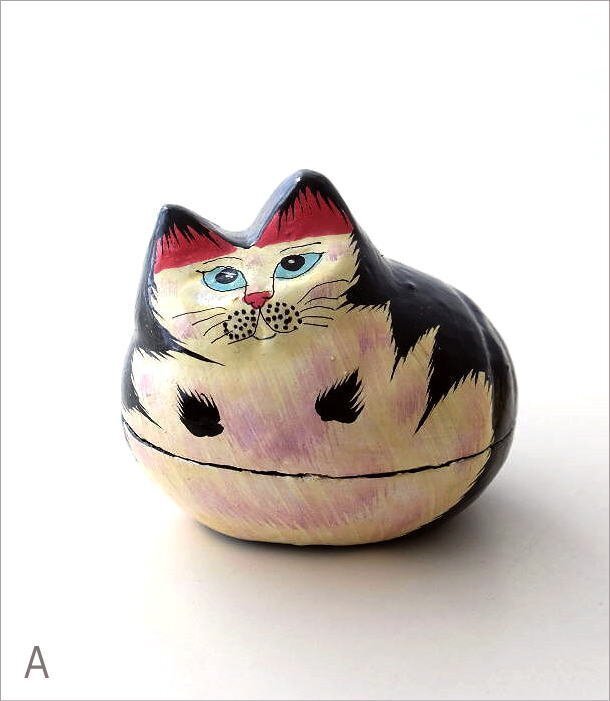 こちらのページでは【Aタイプ】のみの販売です インド、カシミール地方の 伝統的工芸品「ペーパーマッシュ」は 紙と紙粘土で形を作り 自然豊かなカシミール地方特有の風景やお花が 細かく艶やかにハンドペイントされています すべて手作業で行うため、 同じように見えても 一つずつデザインが違っているのも特徴で デスクやシェルフに置くだけで その場が華やぐ エスニックなカラーとデザインが魅力 甘え上手な表情をしたネコのBOXです そのまま飾るだけではなく、 中に小さなアクセサリーなどを 入れて置くこともできます 商品名 : ペーパーマッシュのお座りネコ B 商品番号 : tom8793 全体サイズ(cm) : 幅8.5×奥行6×高さ8 ボックス内サイズ : 幅7×奥行5×深さ3 材質 : ペーパーマッシュ 重量 : 60g 生産国 : インド ※手作り品のため形や絵柄、色合いに多少のばらつきがある場合がございます ※ディスプレイによる色の違いはご了承下さい |