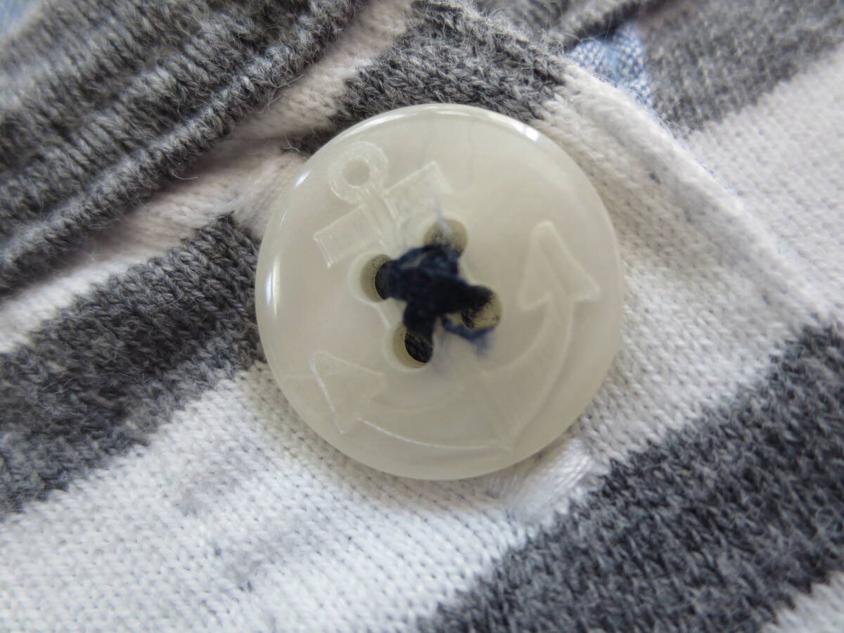 左胸、碇ロゴ入りでボタンの碇ロゴ刻印入りです。