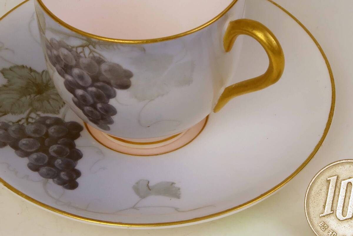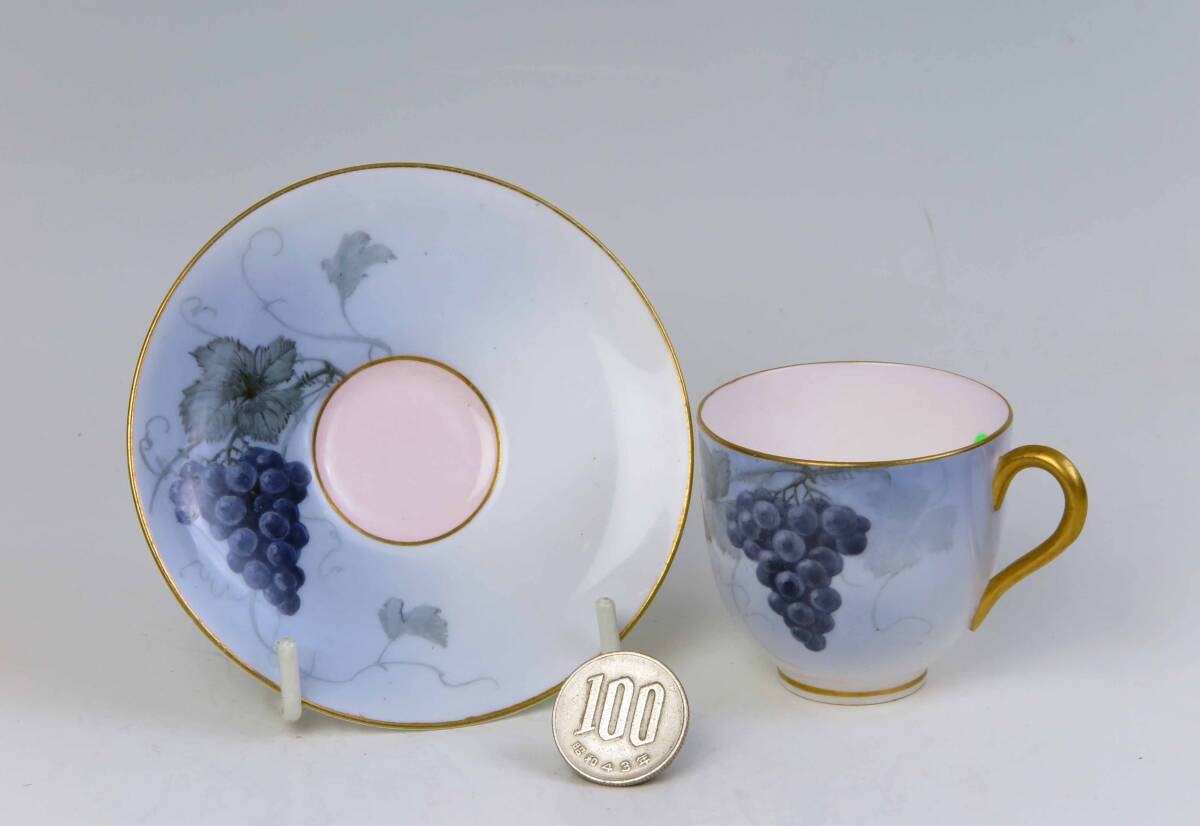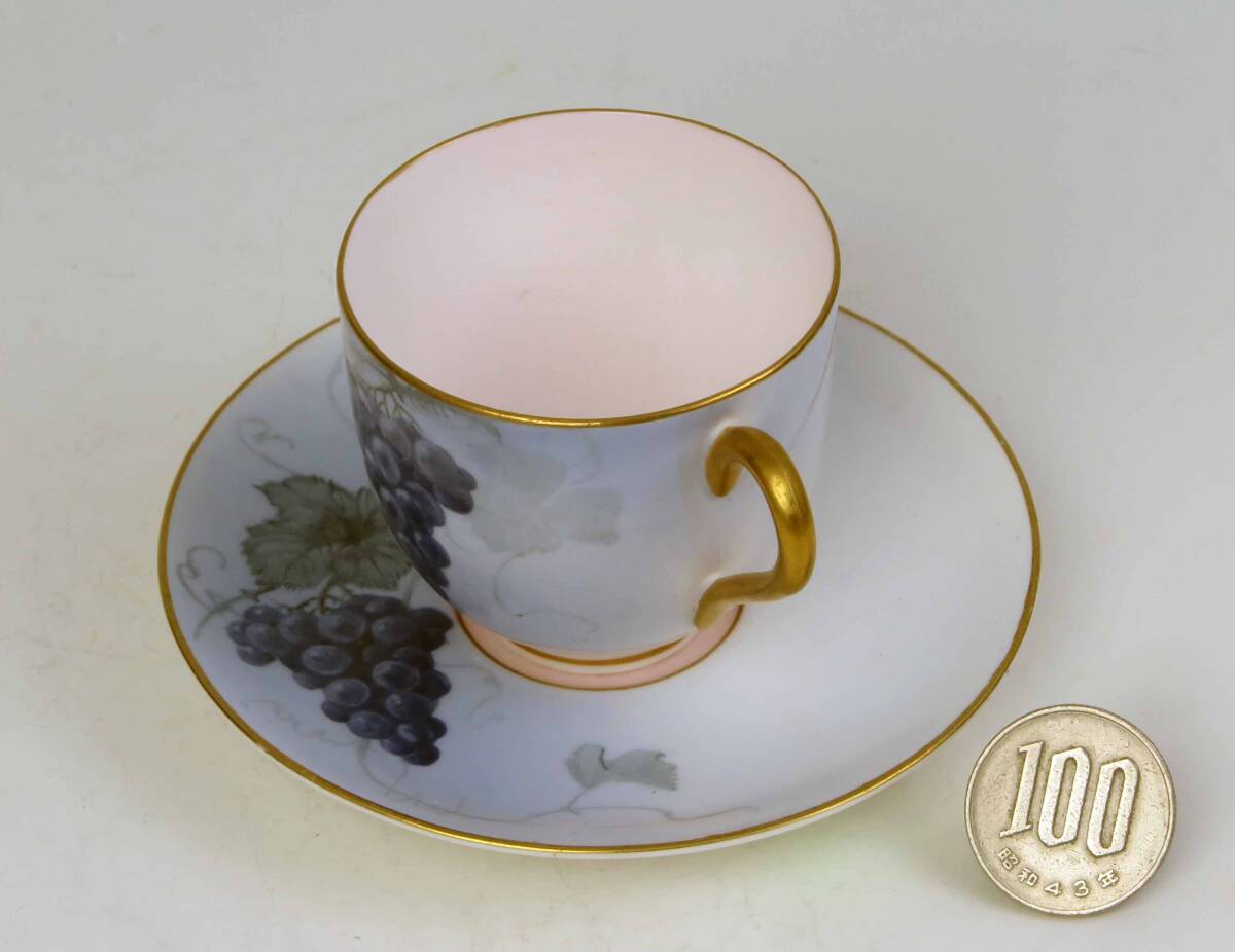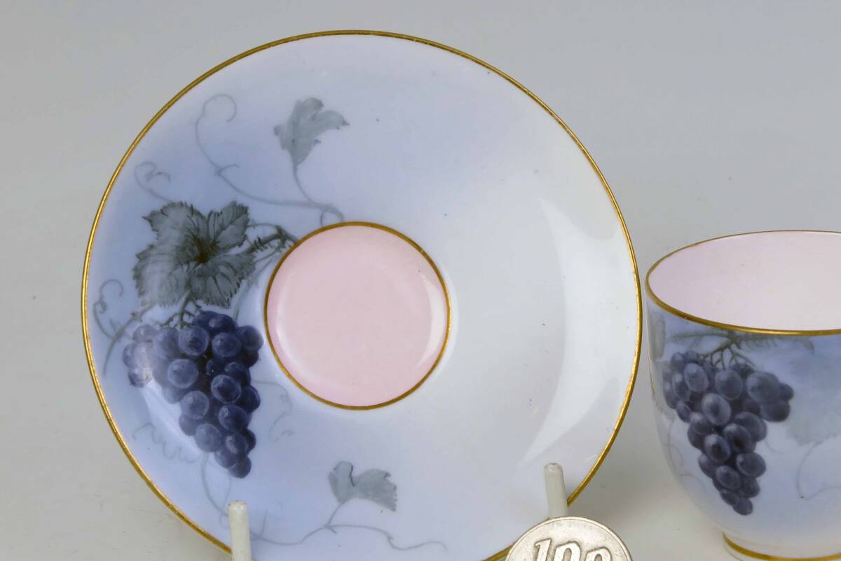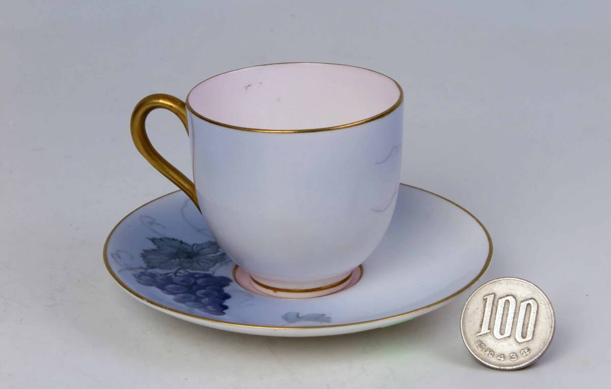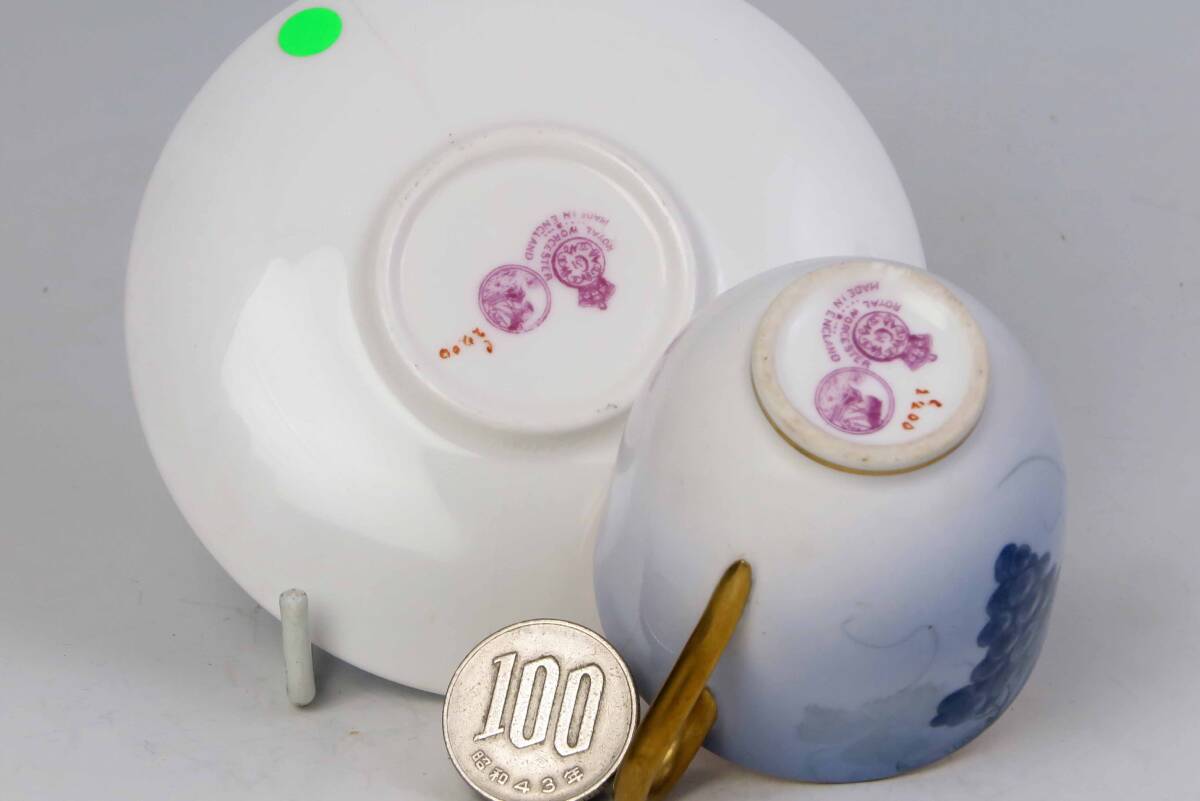 ロイヤル・ウスター 豪華金彩・ミニカップ&ソーサー (1級品)Lt.Blue+G =葡萄絵付。 貴重品です。