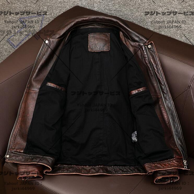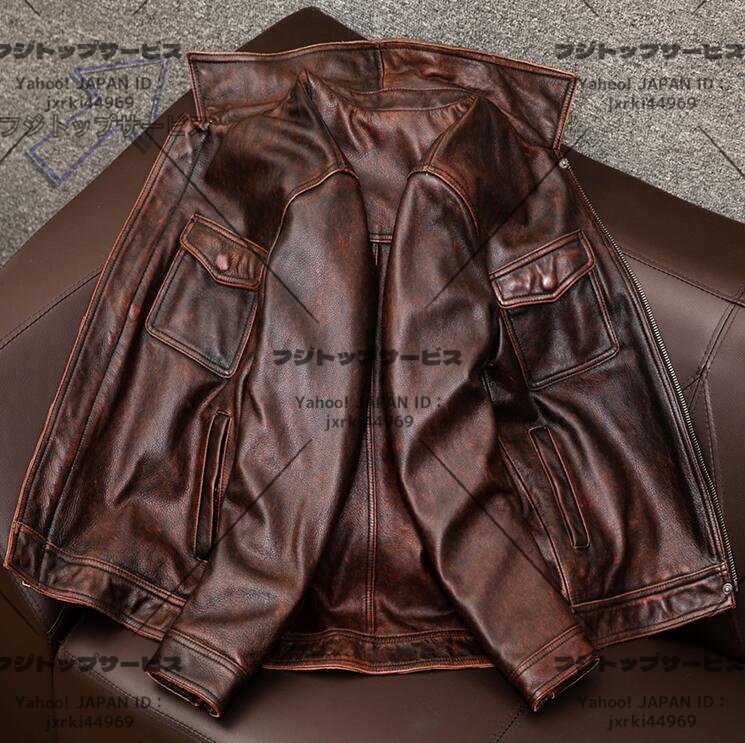 ご覧誠にありがとうございます。 サイズ 【size】 素材:牛革 S: 着丈63cm バスト100cm 肩幅43cm 袖58cm M: 着丈64cm バスト104cm 肩幅44cm 袖59cm L: 着丈65cm バスト108cm 肩幅45cm 袖60cm XL