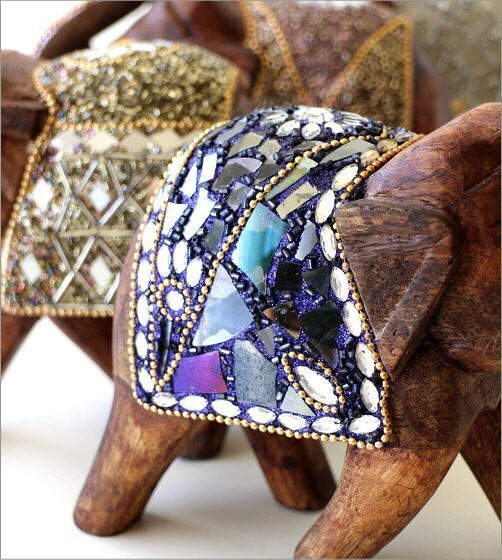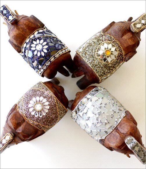 | こちらのページでは【Bタイプ】のみの販売です 木製の像の置物に ラメをベースに塗った上から ビーズやボールチェーン、 ビジューやミラーをにふんだんに配した 煌びやかでゴージャスなエレファント ミラーが自然の光を受けて 壁やデスクにキラキラと 幻想的な景色をつくりだしてくれそう・・・ エキゾチックなオーナメントアニマルは 花鉢やグリーンと一緒に飾ったり 玄関の小さな棚に飾ると 空間のワンポイントになりそうです 商品名 : ビーズとウッドのエレファント 商品番号 : tom2213 全体のサイズ(cm) : 幅15×奥行8×高さ15 重量 : 540g 材質 : 木 ビーズ 他 生産国 : インド ※手作り品のためサイズや色味、パーツの配置、木目の個体差が見られます。また、ビーズ、ラメ、ストーン等に小さな欠けや亀裂、角の尖りやラメの付着等があります。商品の特性として予めご理解の上ご検討ください ※商品の特性上、僅かな傾きやがたつき、接着痕等はご容赦ください ※ディスプレイによる色の違いはご了承下さい |