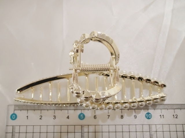 バレッタ本体、クリップ等にメッキ加工が施されておりますが経年劣化による色の変色が生じる場合がございます。