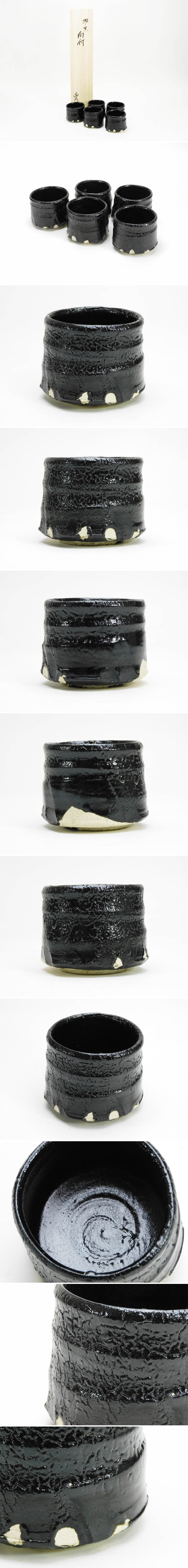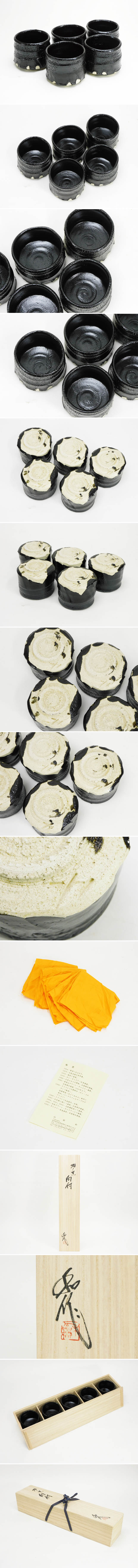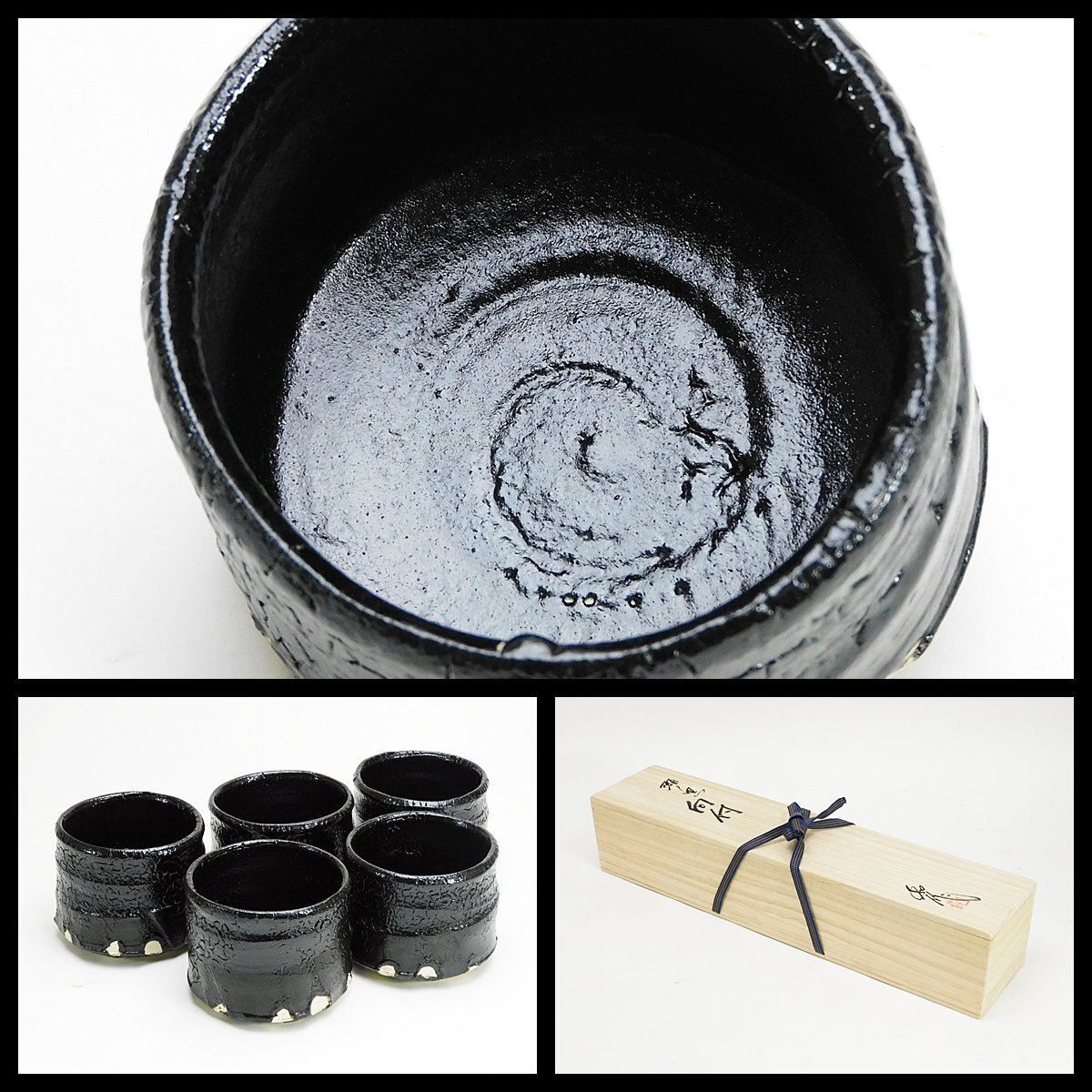 山田和 瀬戸黒 向付 五客 共箱 師加藤唐九郎 山田常山 茶道具 懐石道具 s25050106