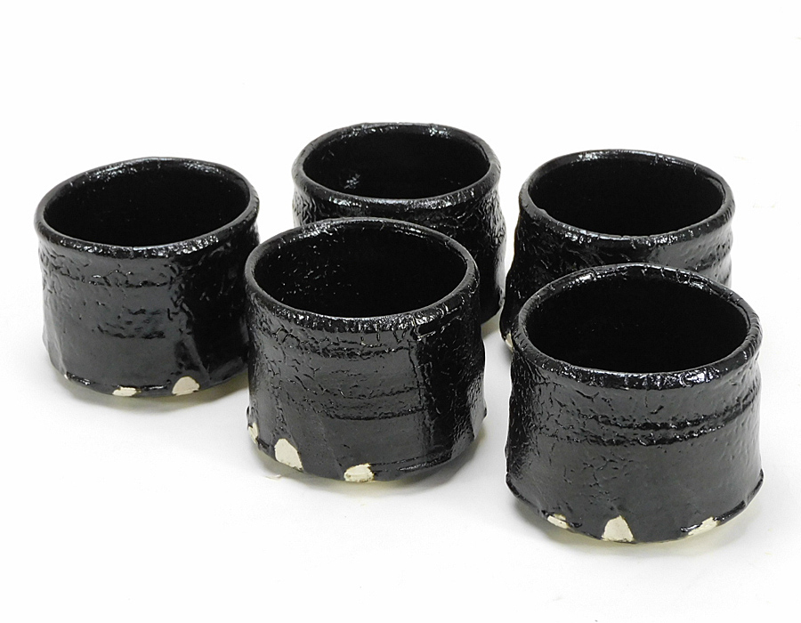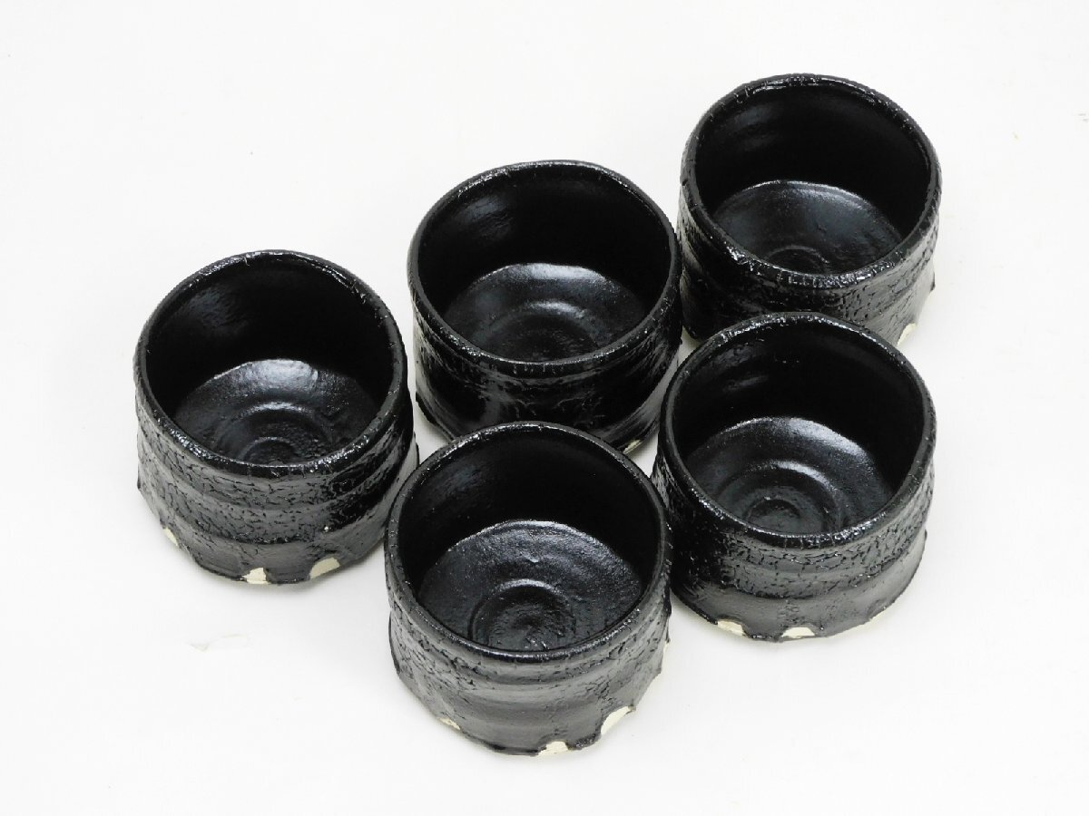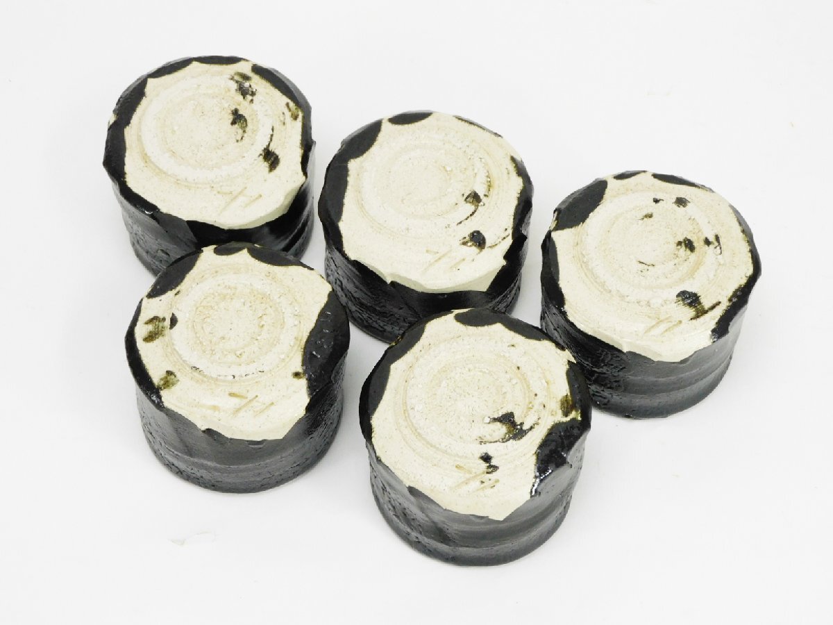 山田和 瀬戸黒 向付 五客 共箱 師加藤唐九郎 山田常山 茶道具 懐石道具 s25050106