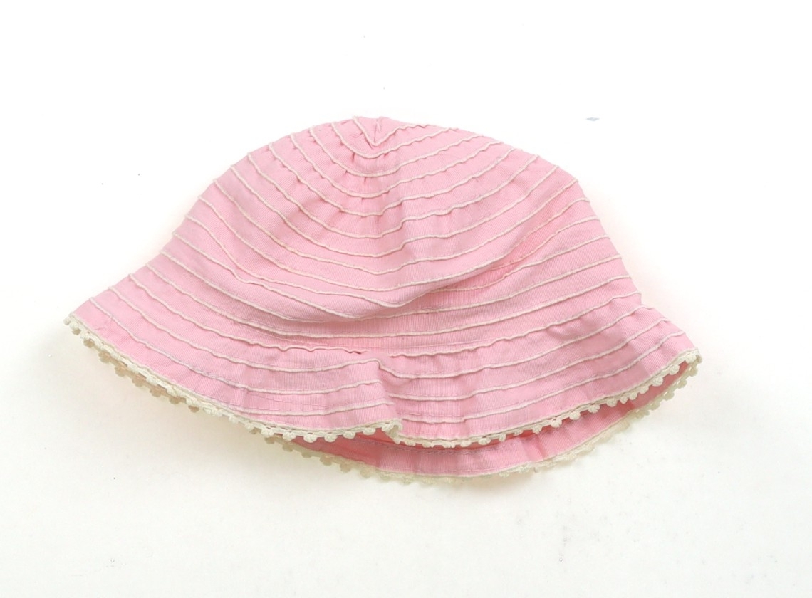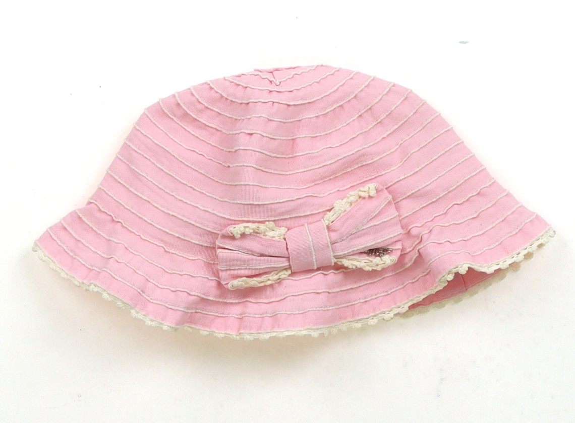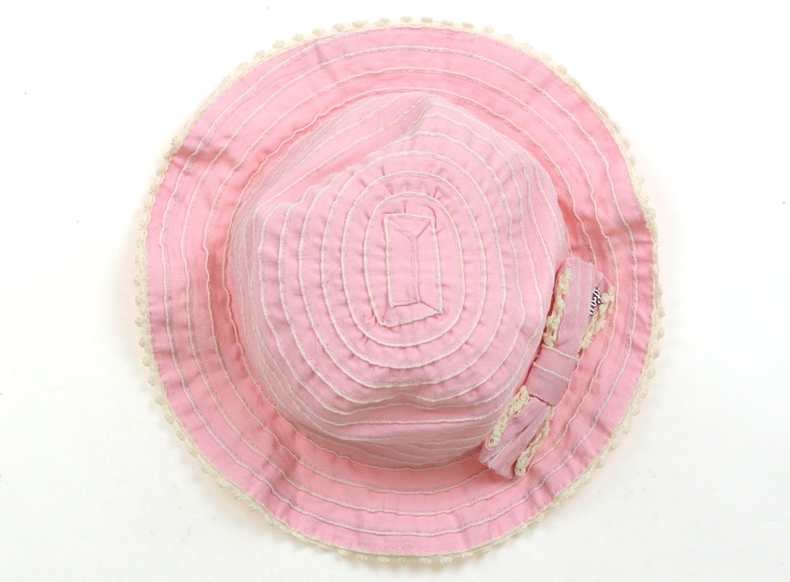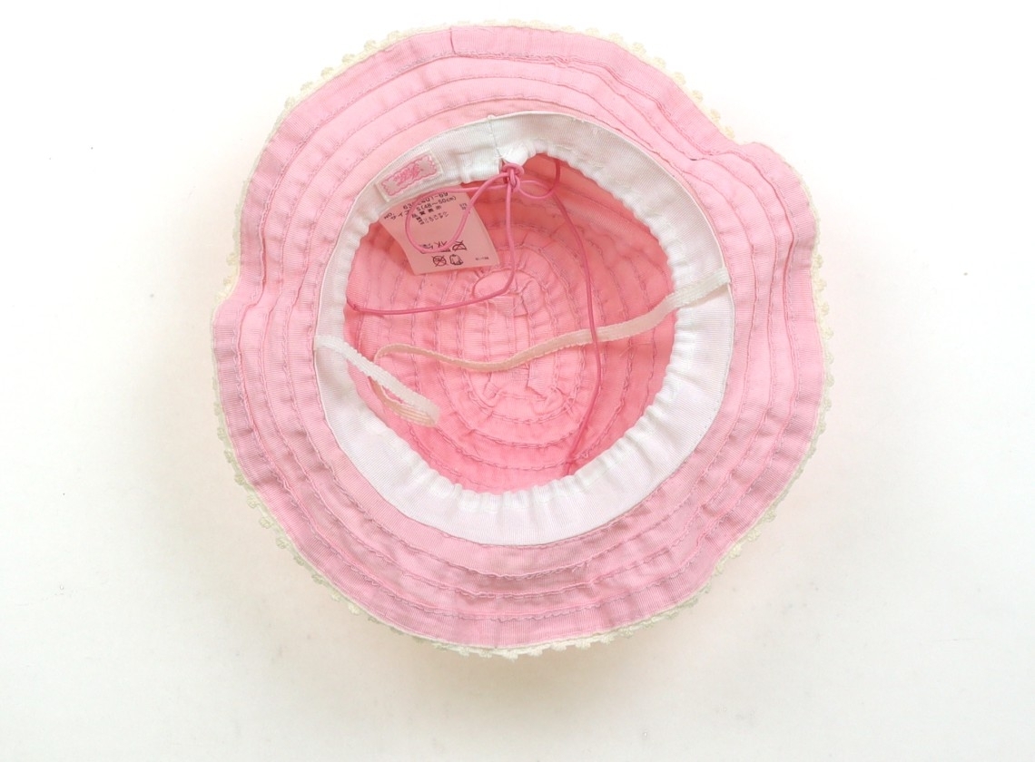 実際のサイズ表記はS(48-50cm)です。綿・ポリエステル素材。あご紐全体薄茶色く汚れています。洗いざらし感があり、色褪せとヨレあり。つばまわりやや黄ばみ汚れあり。