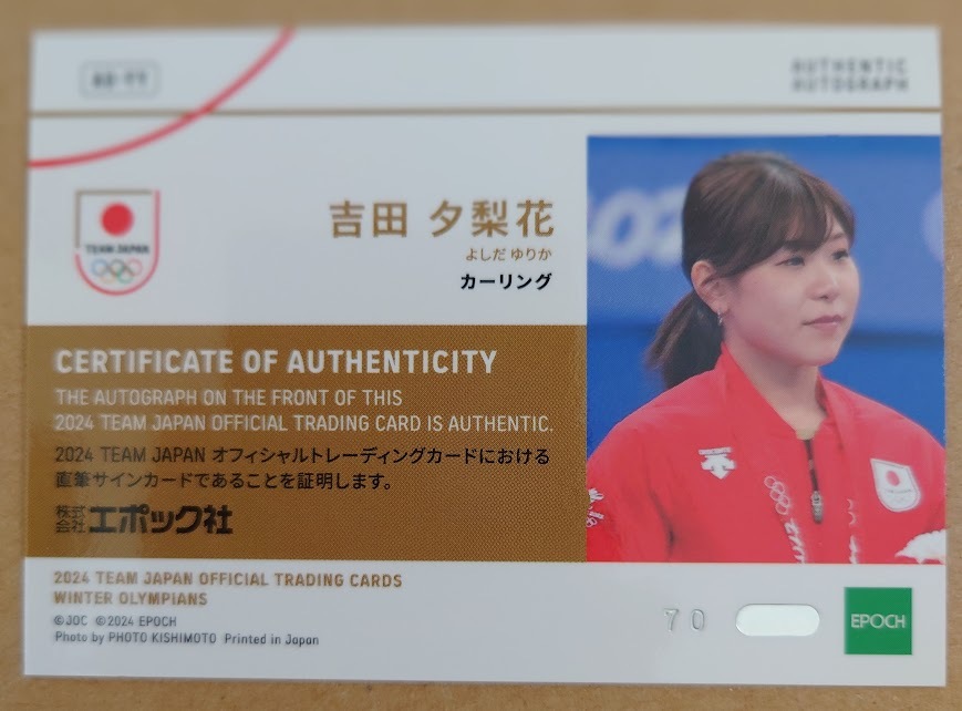カーリング 日本代表 メダリスト 吉田夕梨花 直筆サインカード 2024 TEAM JAPAN オフィシャル トレカ オリンピック代表 Autograph EPOCH