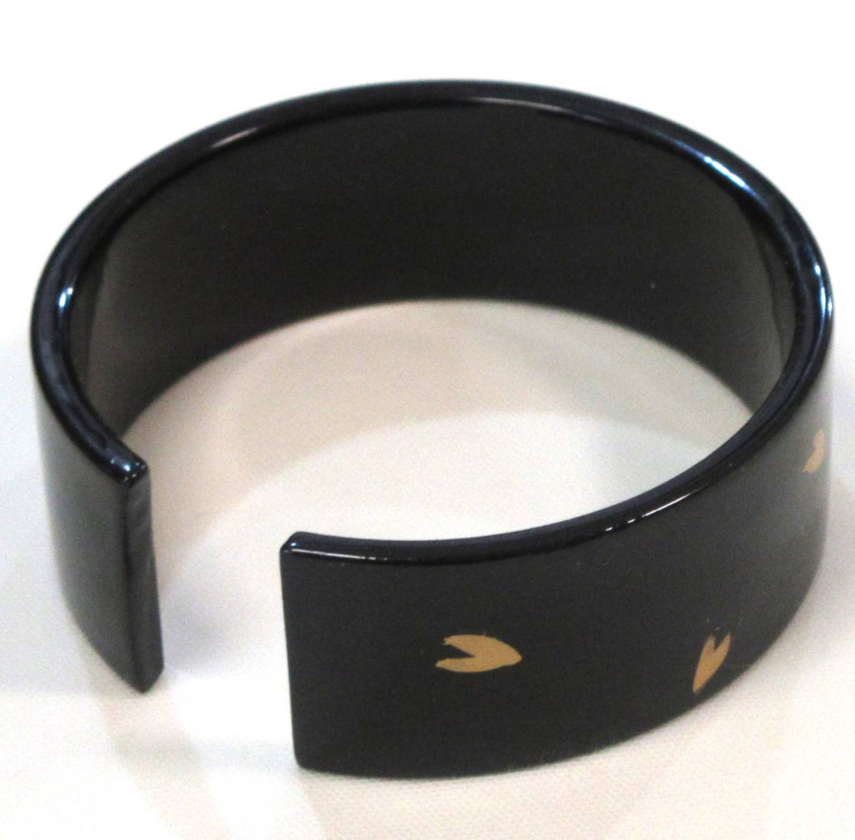 木製漆塗りのブレスレット 手描きの金蒔絵が素敵です 蒔絵 渡部秀昭作 会津工芸新生会 手塗漆の温もりのある質感が素敵です 通常小売価格12800円 サイズ 直径8cm×2.4cm 内寸 7cm 状態: 新品 箱無 送料無料です | |||