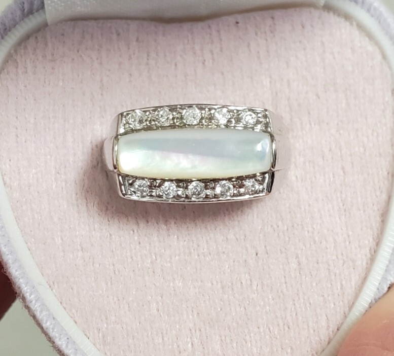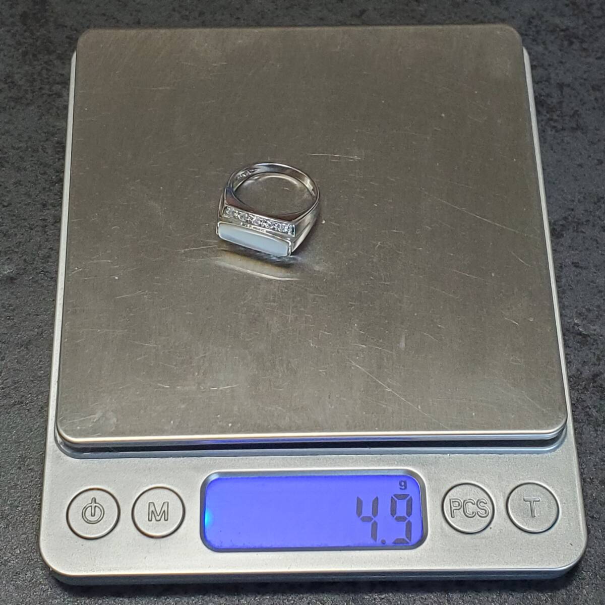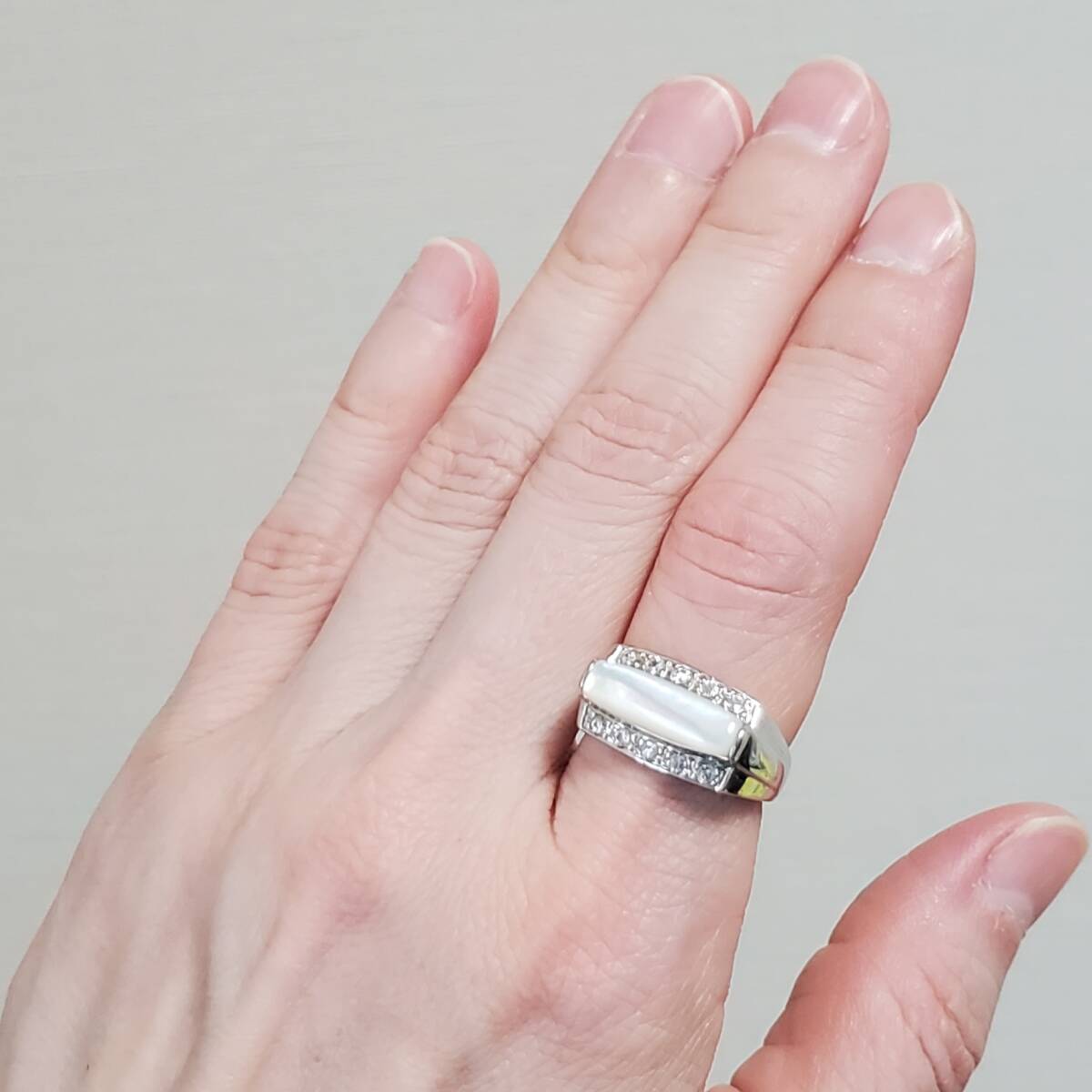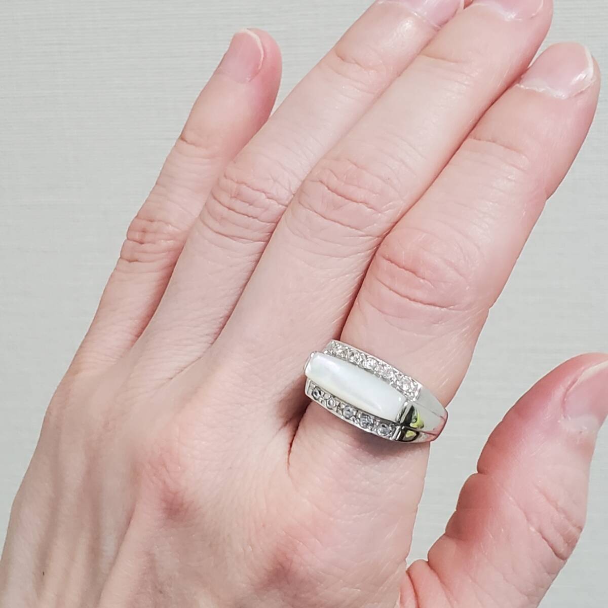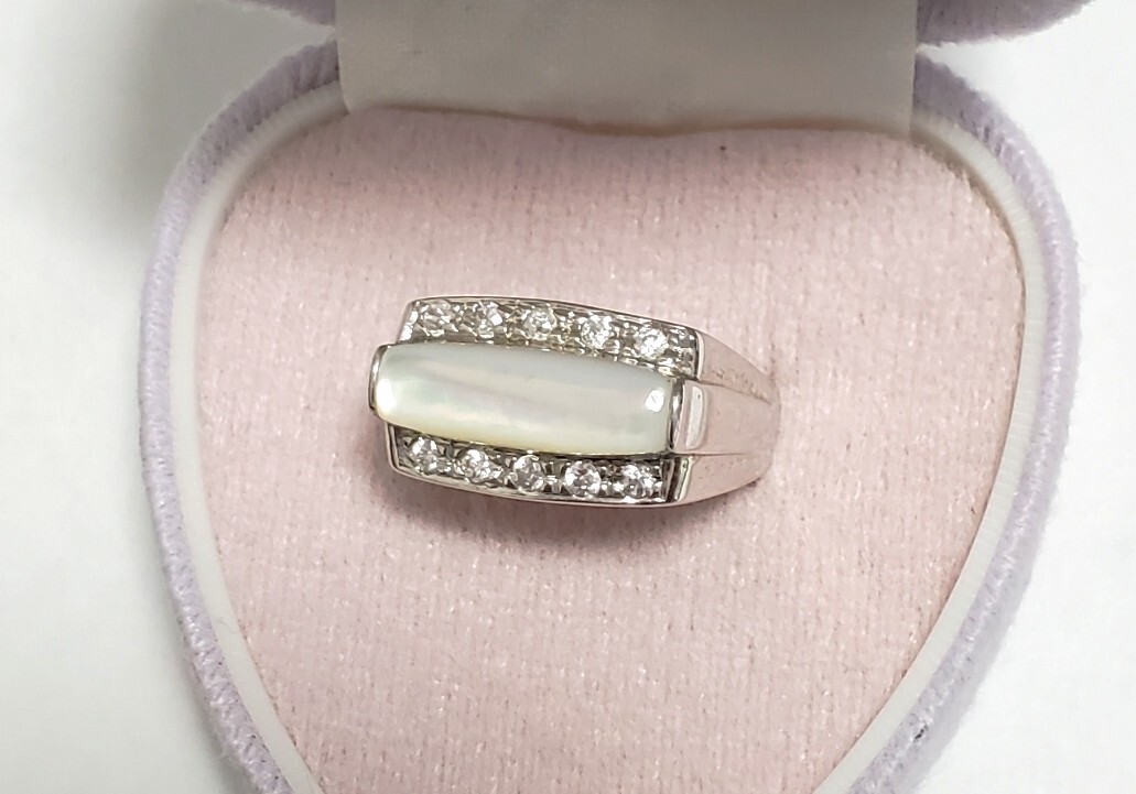 SILVER 925 シルバー925刻印 シェル キュービックジルコニア 指輪 レディース 12号 4,9g