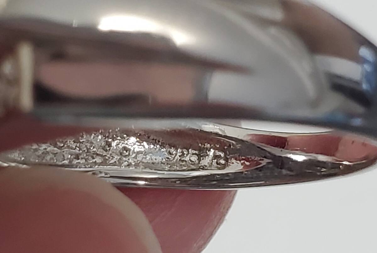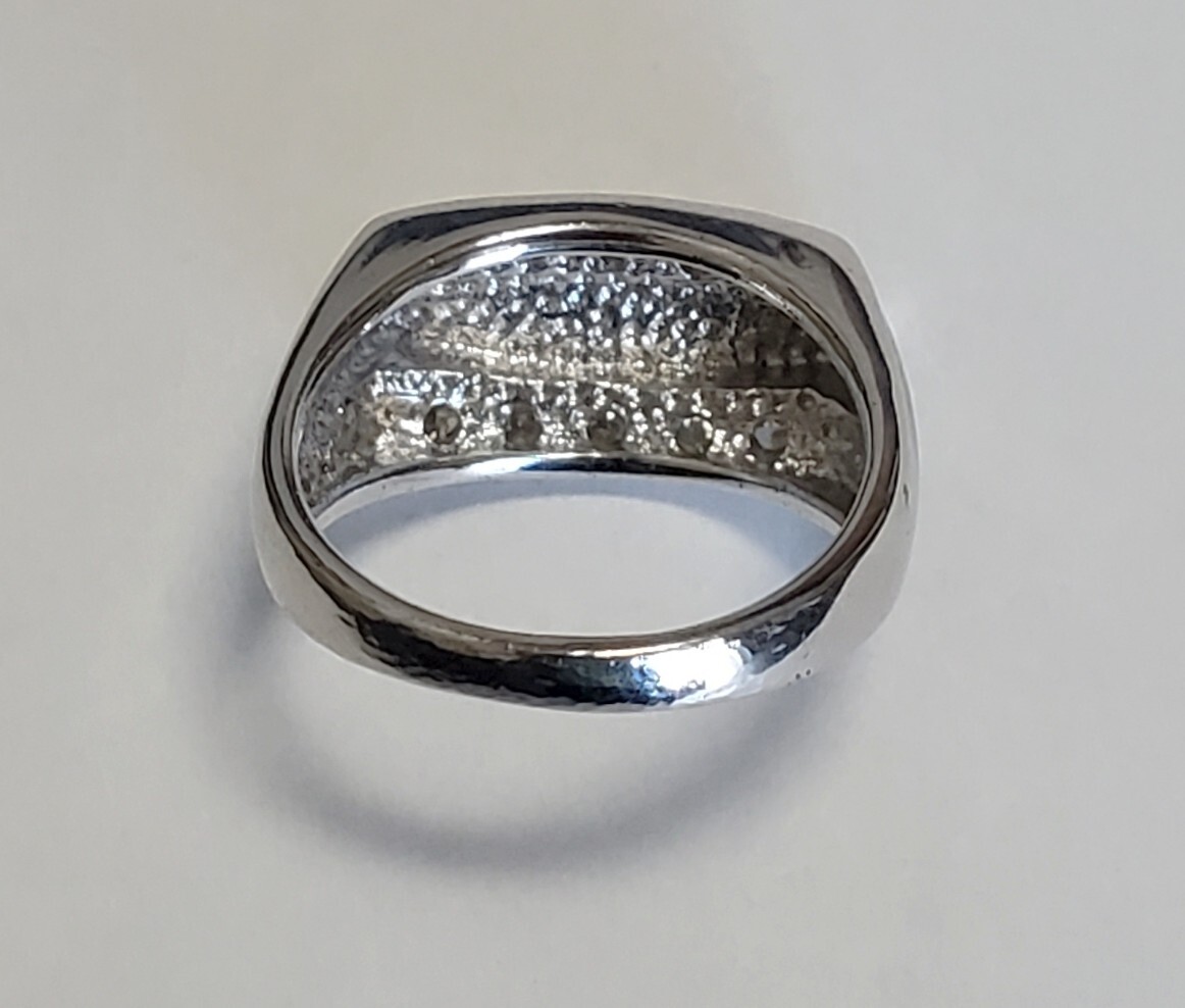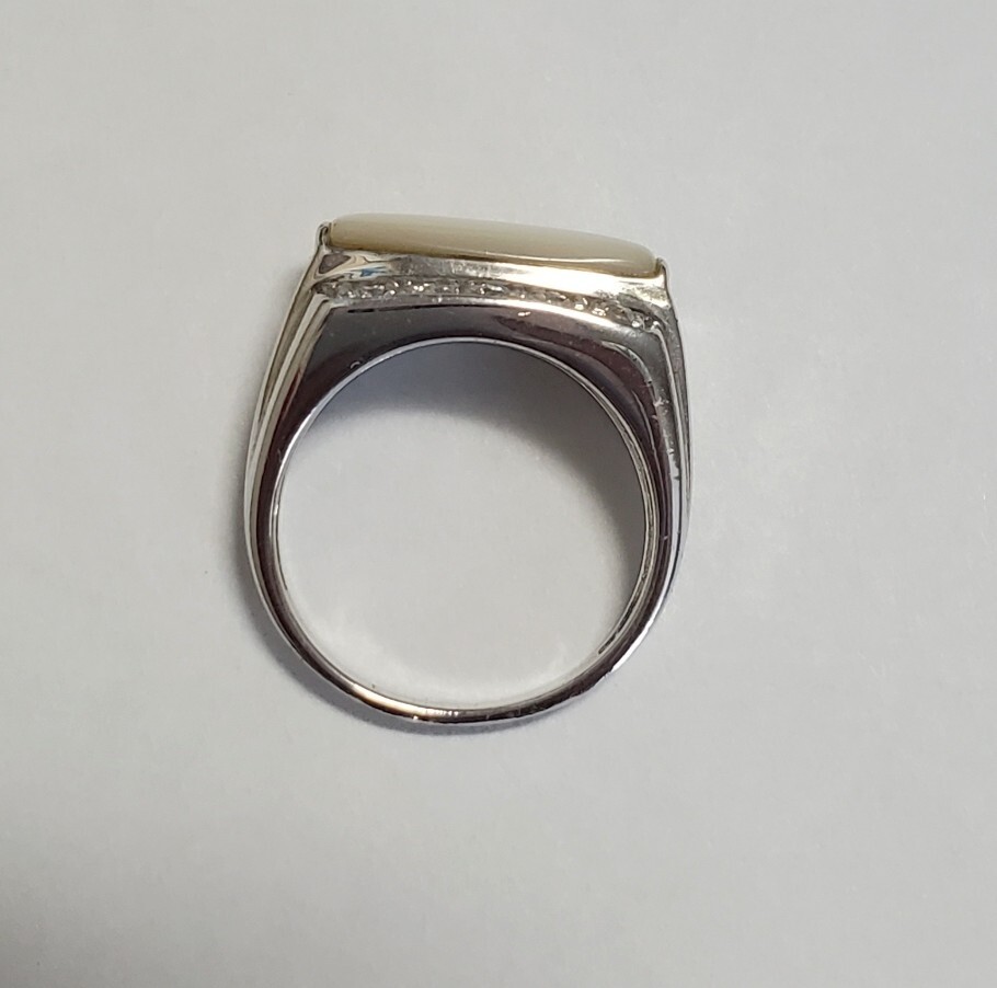 SILVER 925 シルバー925刻印 シェル キュービックジルコニア 指輪 レディース 12号 4,9g 美品