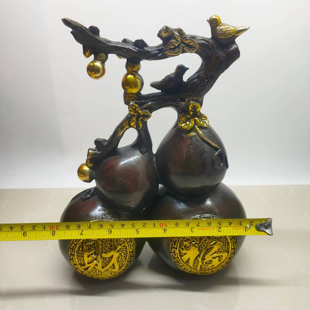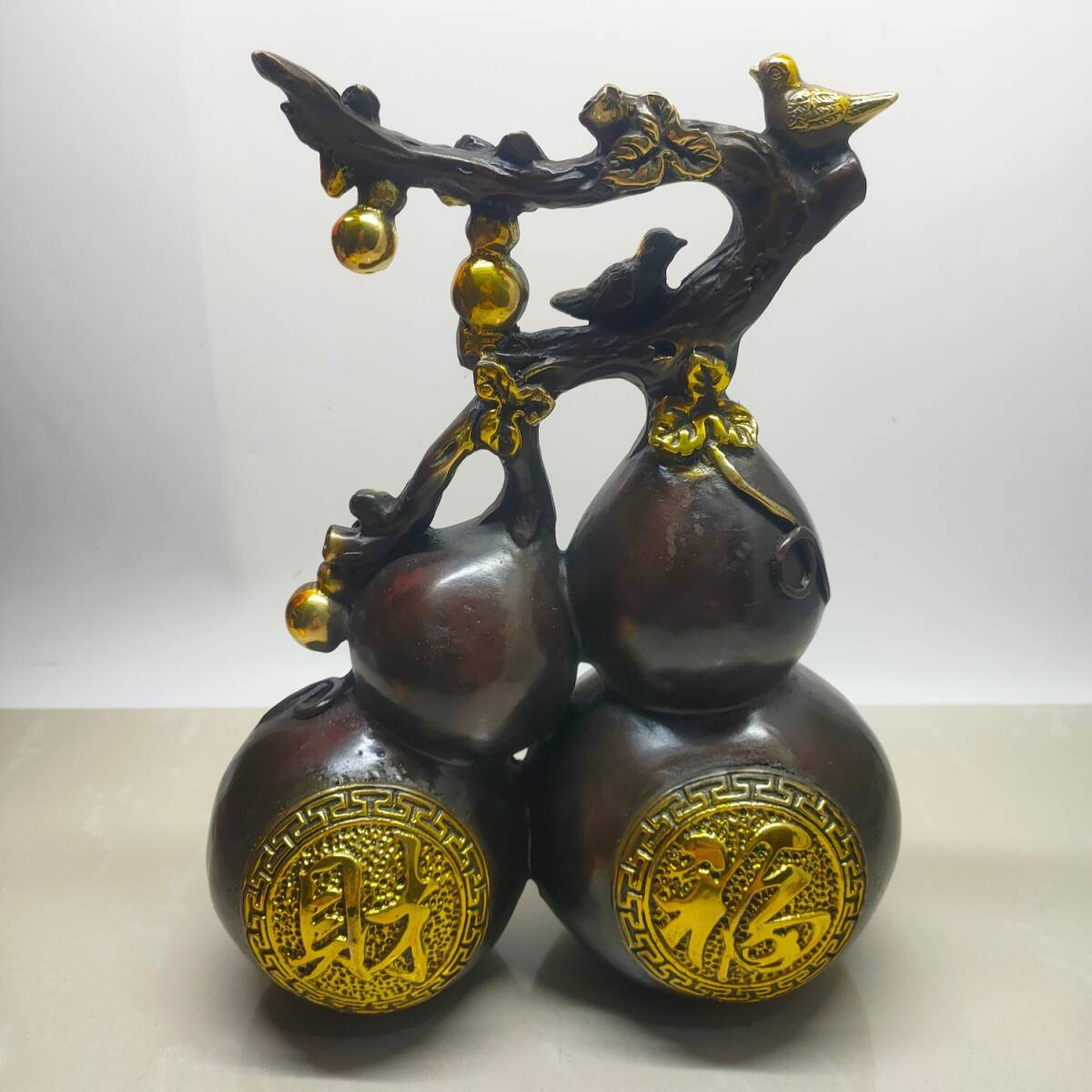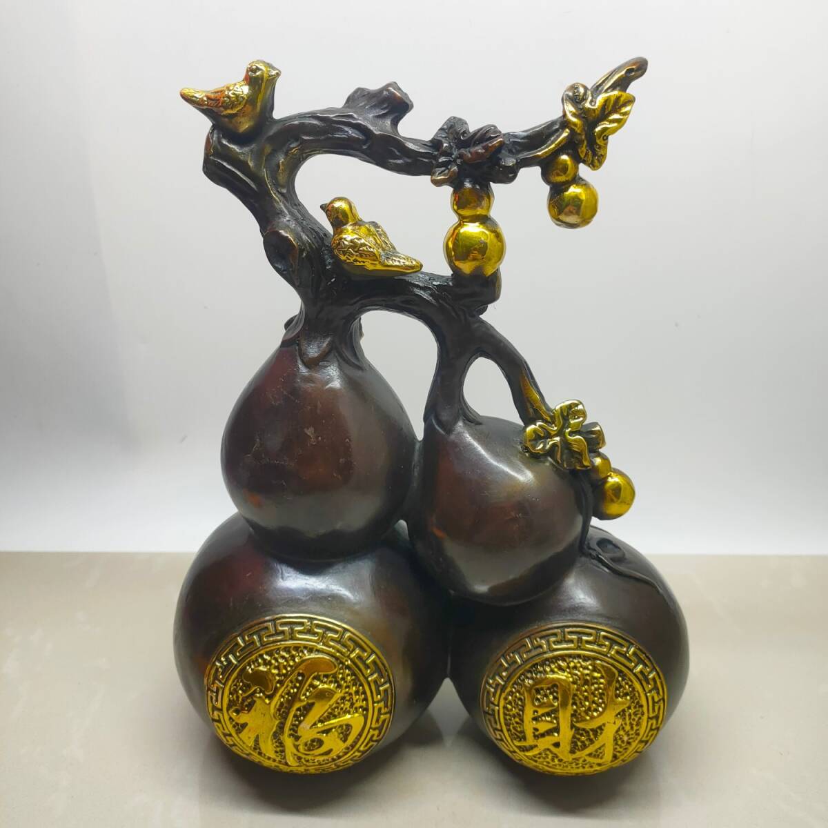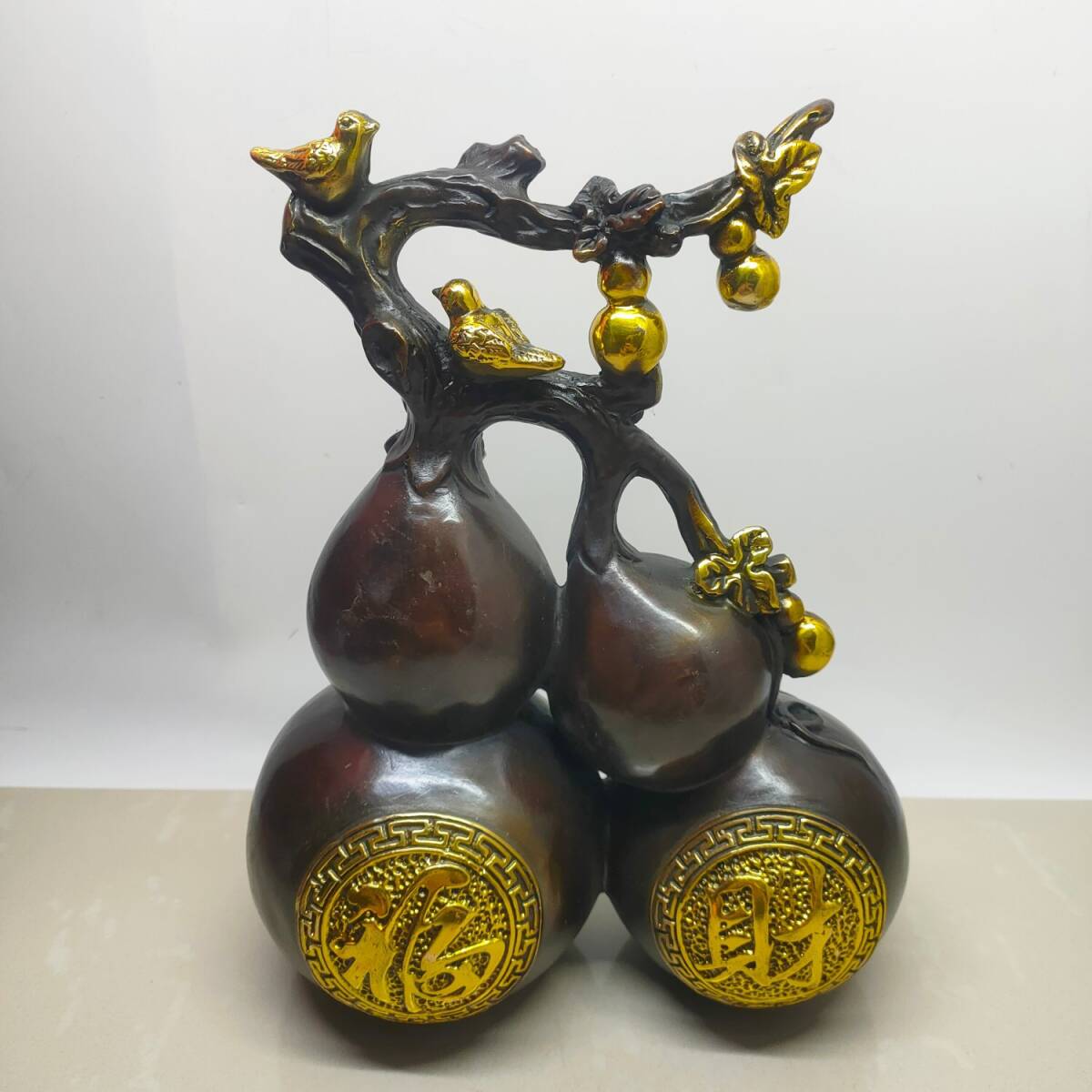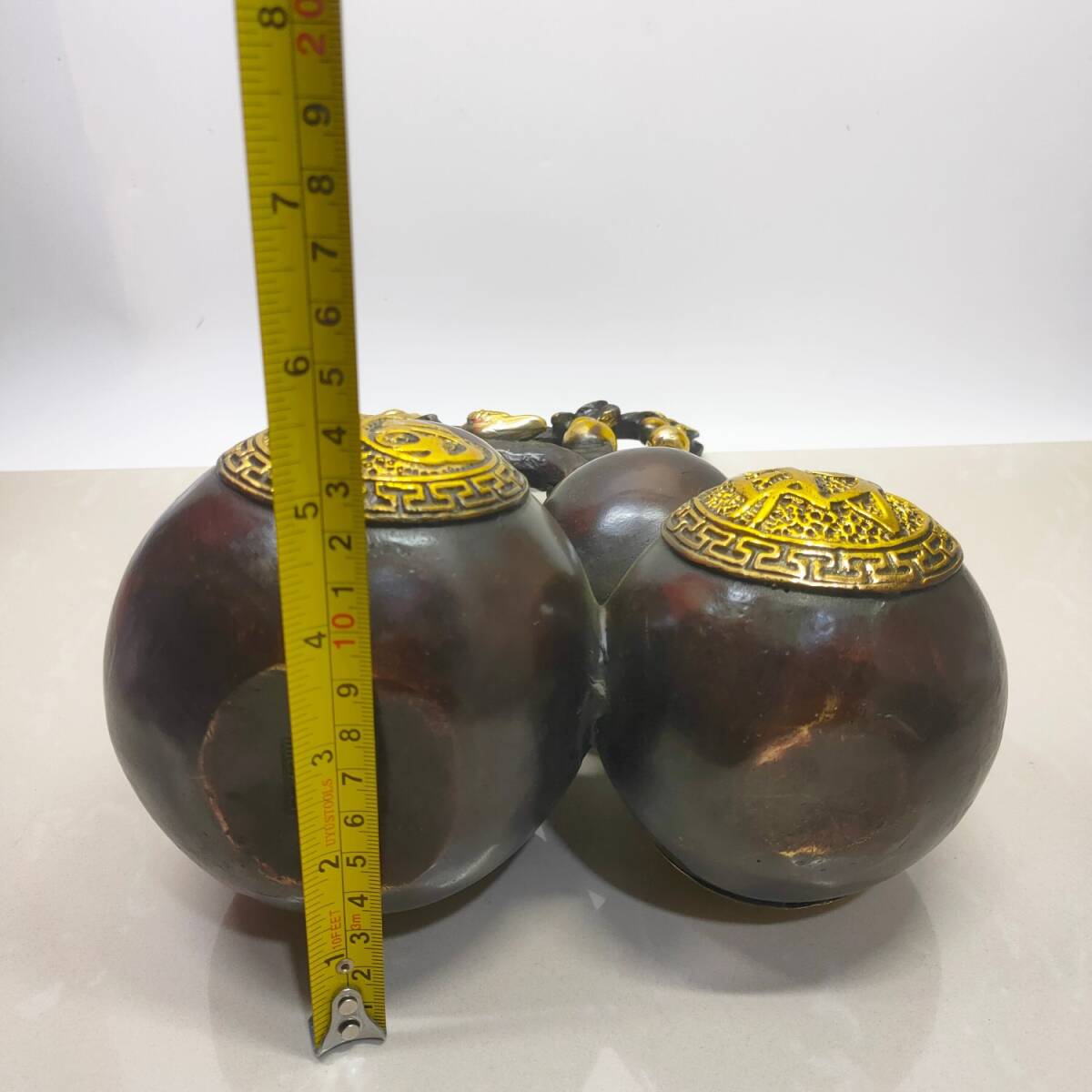 | 【蔵友館蔵品・黄銅製・塗金・財富ひょうたん】・希少珍品・置物・賞物・中国時代美術 |