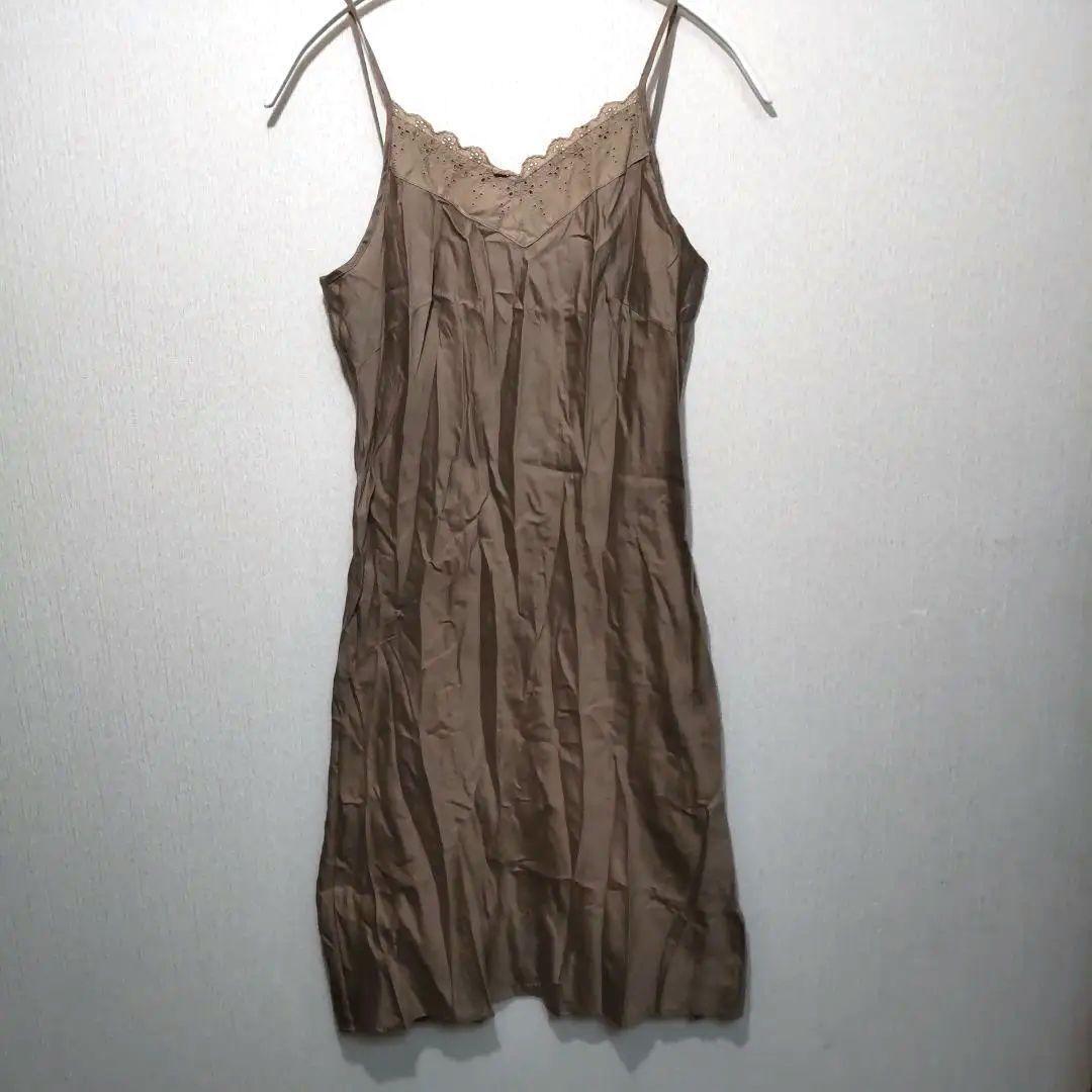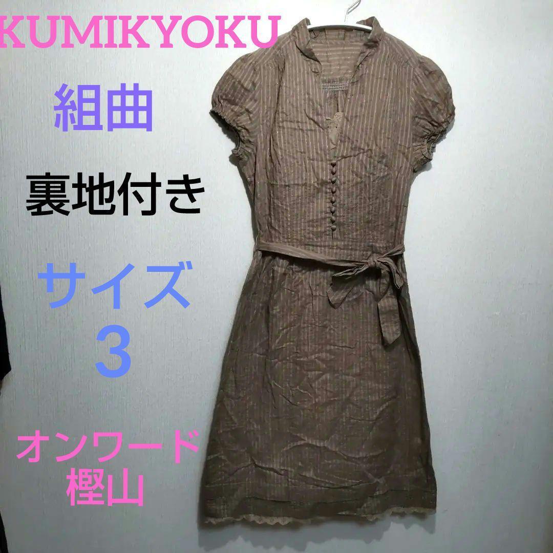 組曲 綿 すそレース半袖ワンピース 茶 裏地付 サイズ3です。