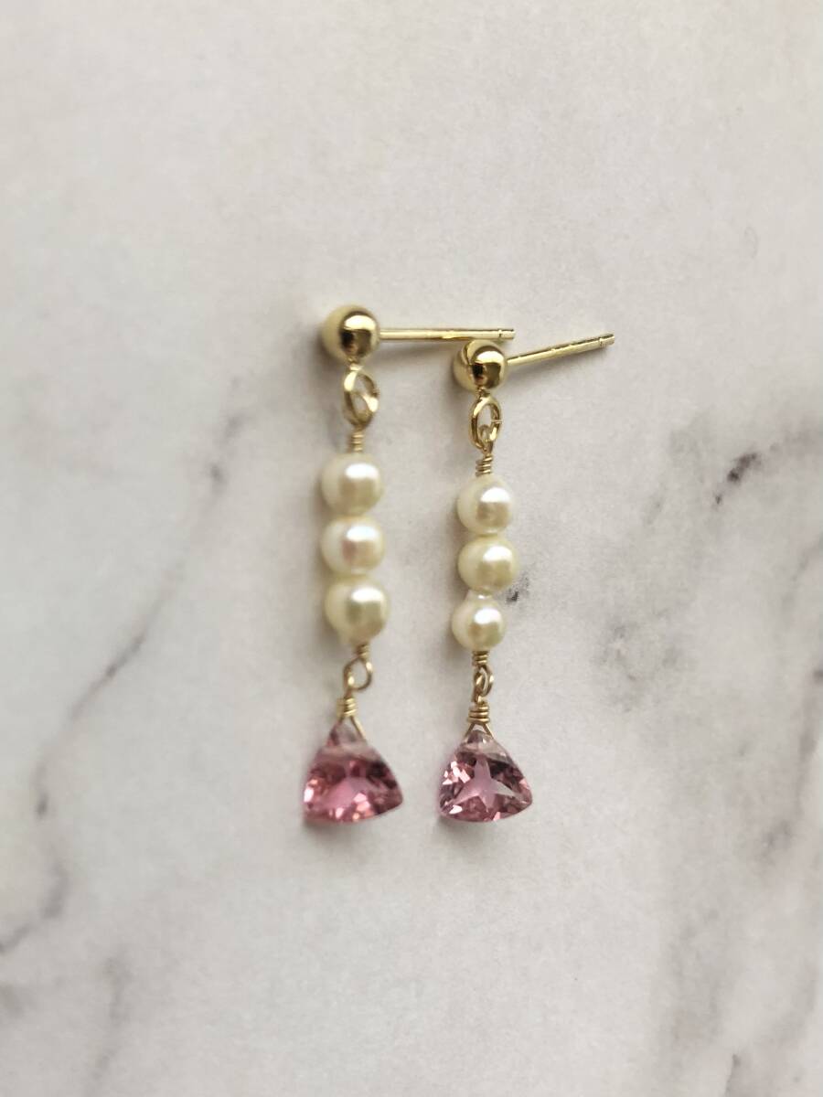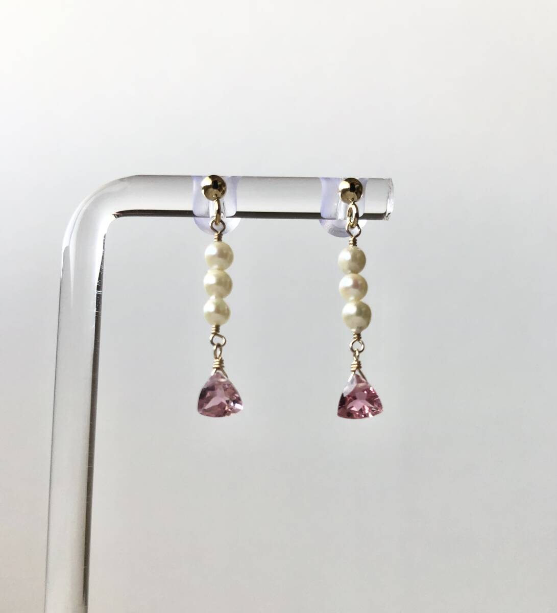 商品名 | ピンクトルマリンとアコヤ真珠のピアス |