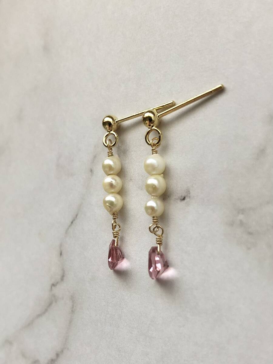 ピンクトルマリンとアコヤ真珠のピアス ベビーアコヤ バロック | |