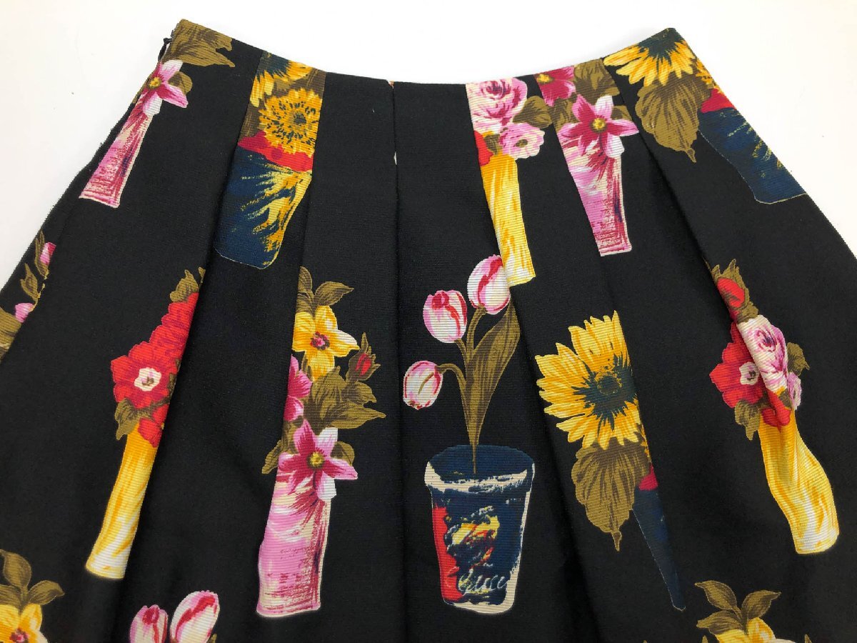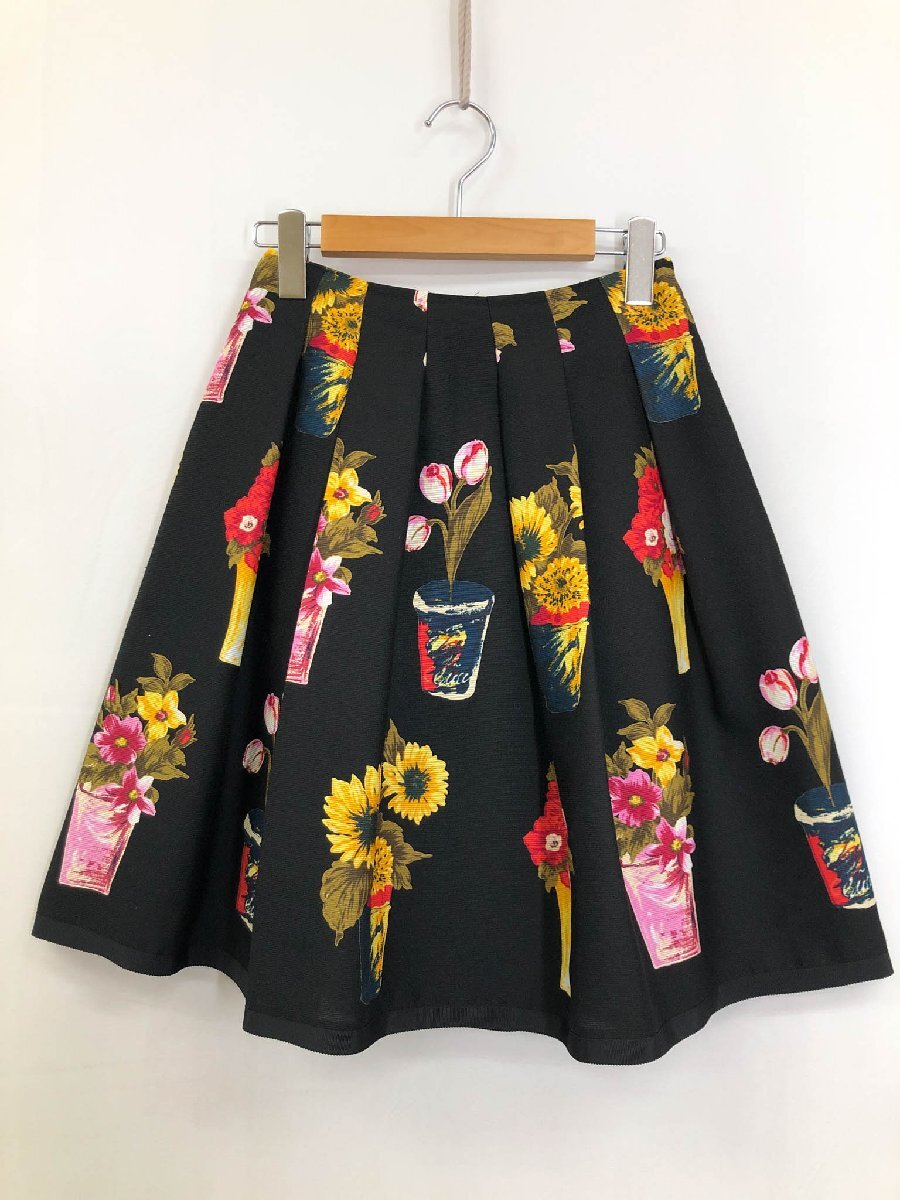 HH極美品【M'S GRACY エムズグレイシー】PM-627306 フラワープリント柄 膝丈 フレアスカート (レディース) size36 ブラック系 ◯17LF3867◯