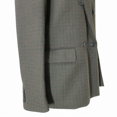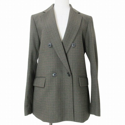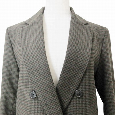 ユニクロ UNIQLO 美品 22AW ダブルジャケット チドリ 211-452679 千鳥格子 総裏地 ウール混 S オリーブ X レディース