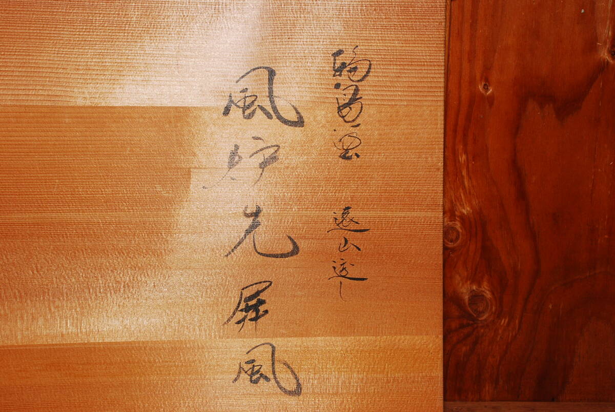 | 【商品詳細】 目白宗芳 造 風炉先屏風の出品となります。 [サイズ] 高さ:72.9cm 幅(半分に折った状態で):85.0cm ※素人の採寸・計量ですので若干の誤差は御了承下さい。 左の内側下部の縁部分に塗り部分のヒビが見られます。 その他には目立った傷もなく綺麗な状態ですが、 細かなスレが少々見られます。 詳細な状態は画像にてご確認ください。 【送料】 ヤマト運輸200サイズでの配送を予定しています。 送料に関しましては、下記の料金表を参照して下さい。