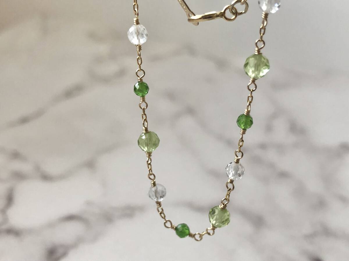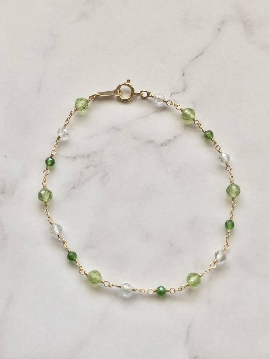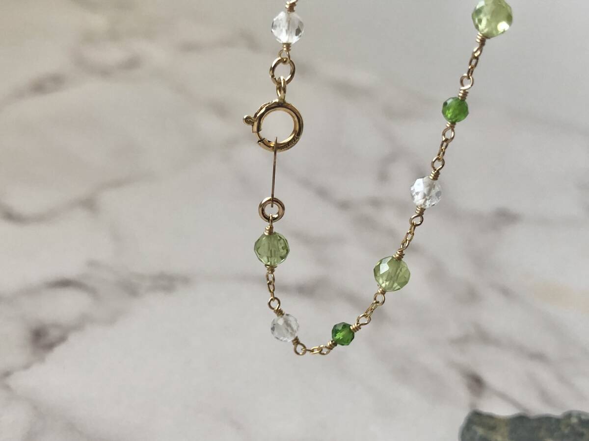 フレッシュグリーンの天然石ブレスレット ペリドット クロムダイオプサイト ゴールドフィルド | |