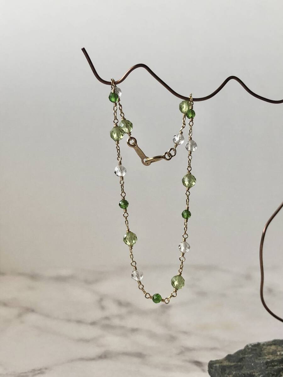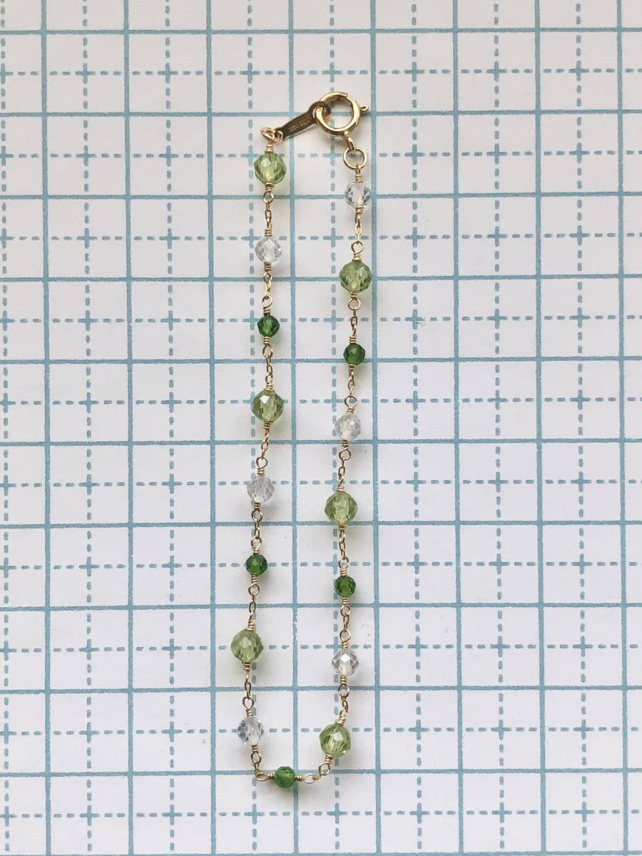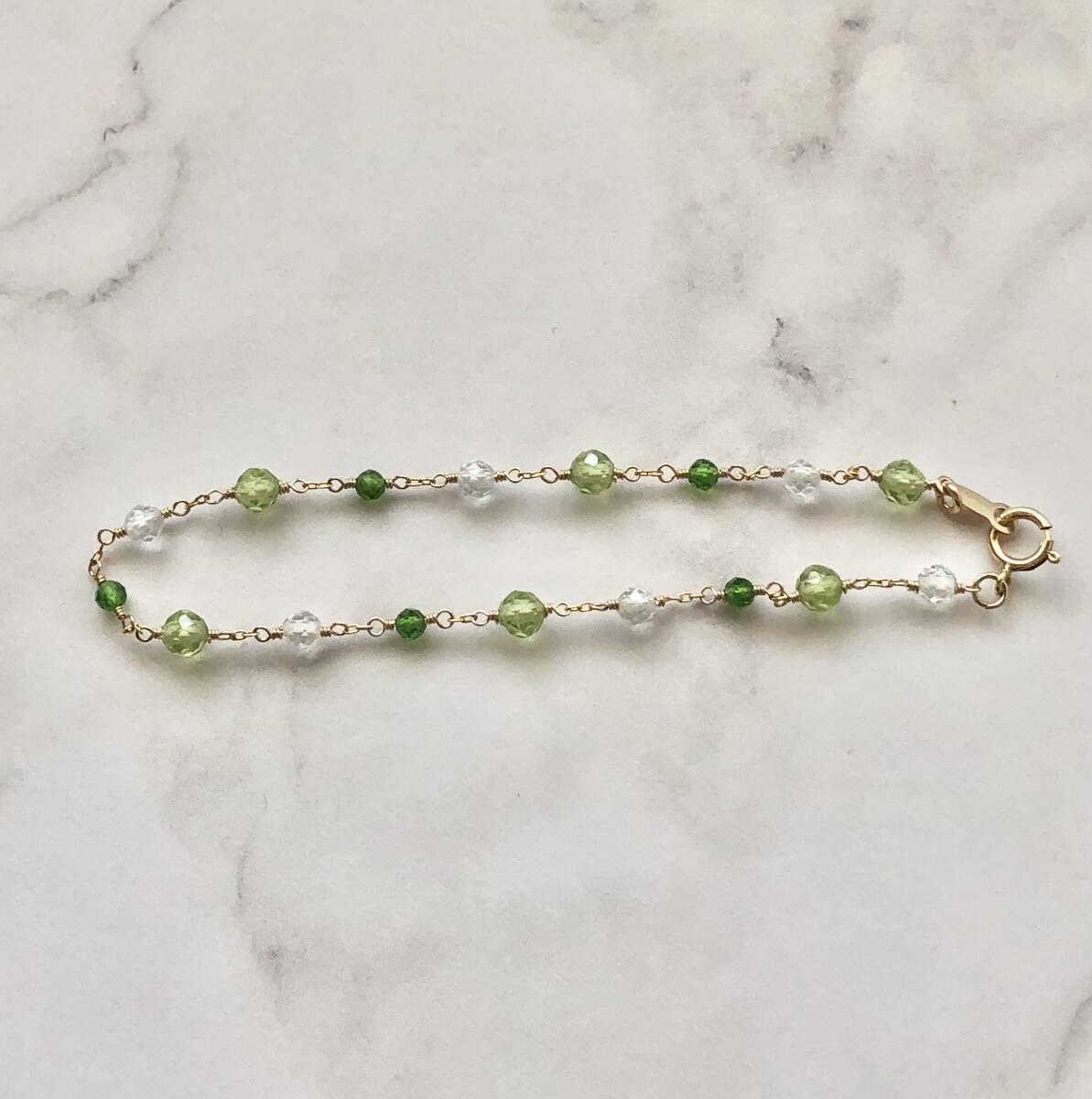 フレッシュグリーンの天然石ブレスレット ペリドット クロムダイオプサイト ゴールドフィルド | |