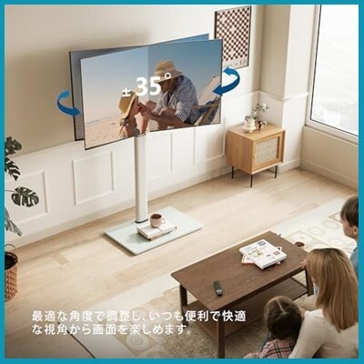 • また、左右方向へ±35°回転することができるので、リビングルームだけでなく、キッチンや寝室に居ても、最適な調整角度で調整し、いろんな視角からの観賞を満たします。