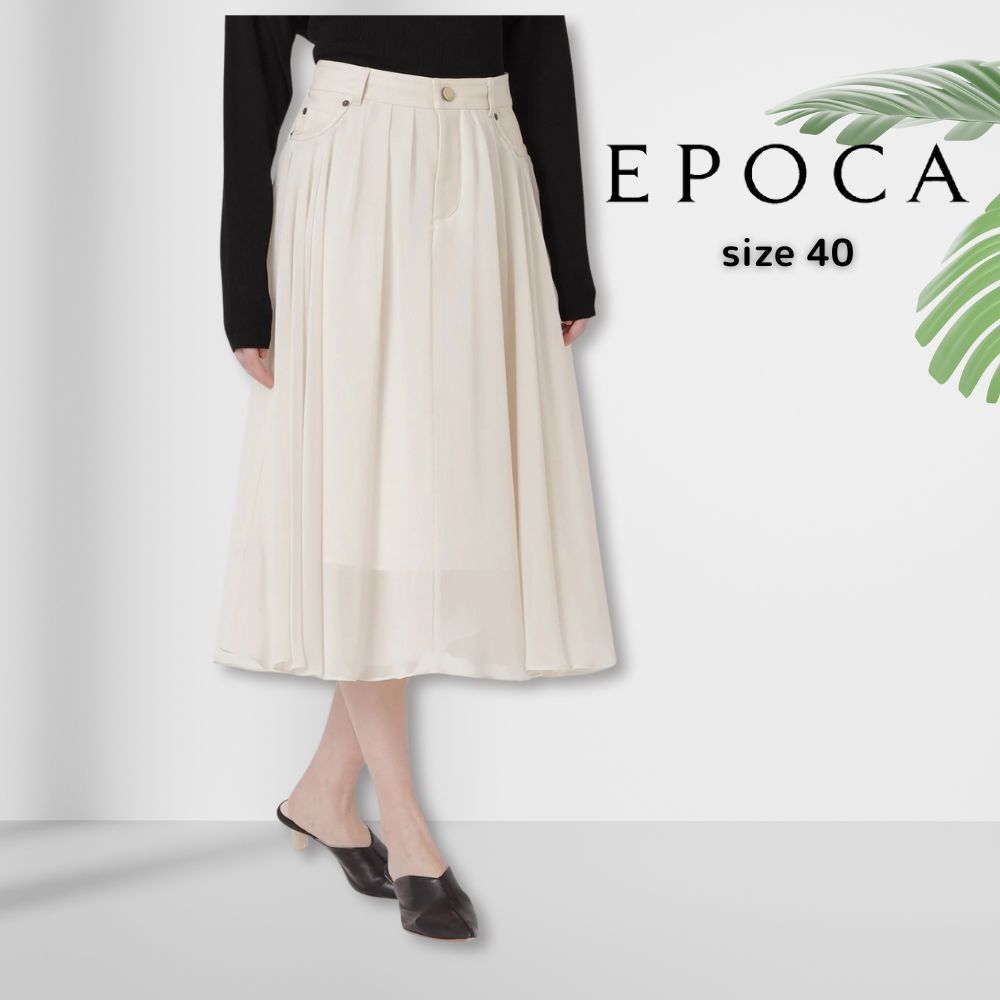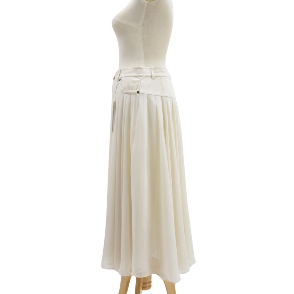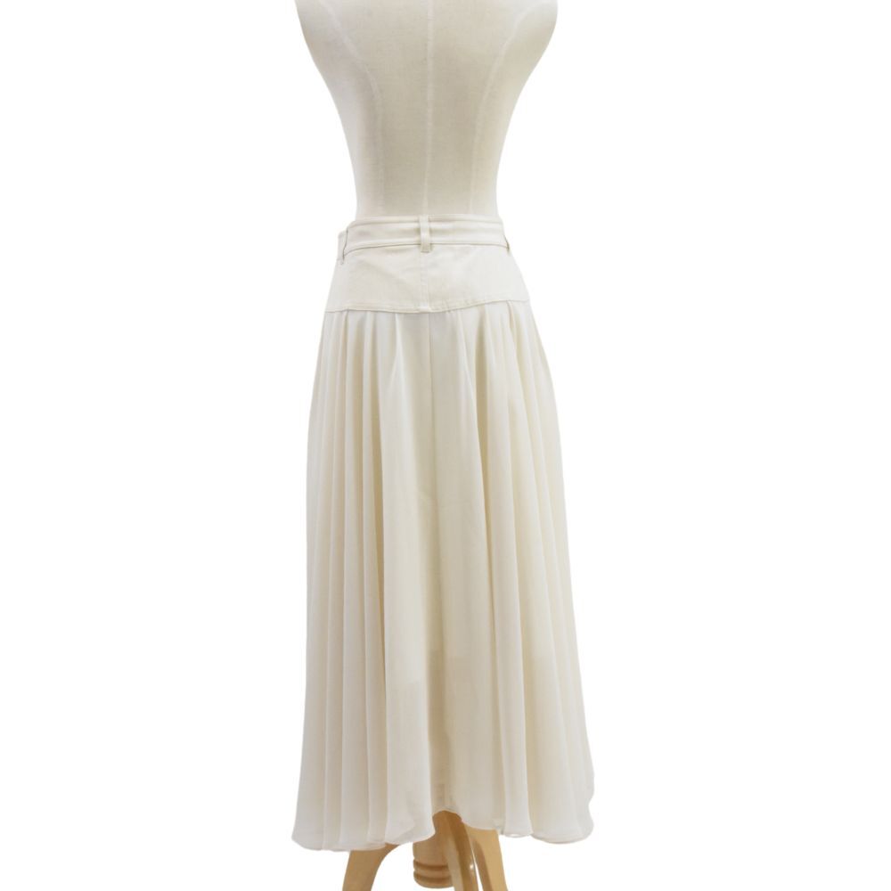 デニム調素材を部分的にコンビさせることで上品なカジュアルが叶うスカート。