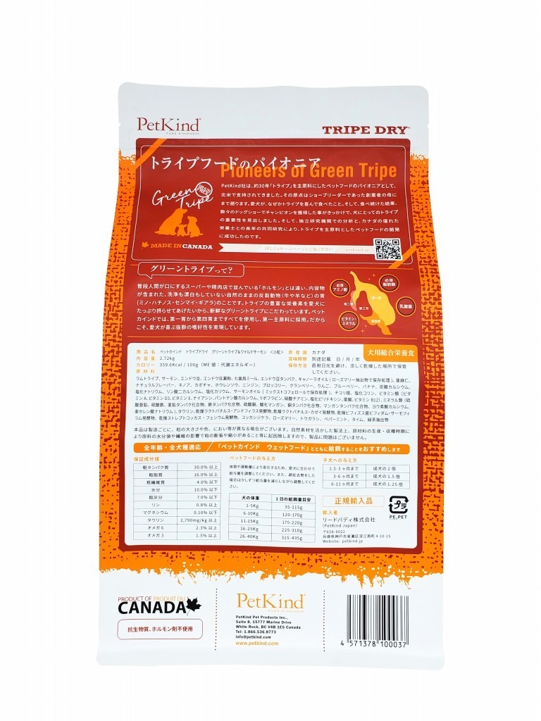 ペットカインド グリーントライプ&ワイルドサーモン 小粒 6.35kg×1個