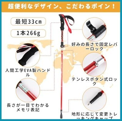 • 【コンパクトで収納しやすい】伸縮式トレッキングポールに比べ、軽量でコンパクト。