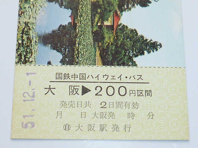 ※ 記念切符★国鉄中国ハイウェイバス 沿線観光シリーズ乗車券 No.3★大阪駅発行★昭和51年12月1日★1枚★2479 ※