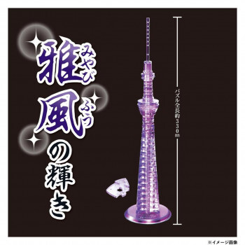 | このパズルは透明のピースを組み上げる立体ジグソーパズルです。完成すると、クリスタルのように美しく輝くインテリアとして楽しめます。伝統と先端の新しいシンボルである東京スカイツリーが出来上がります。 |