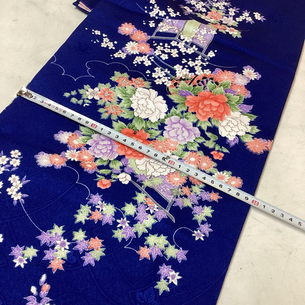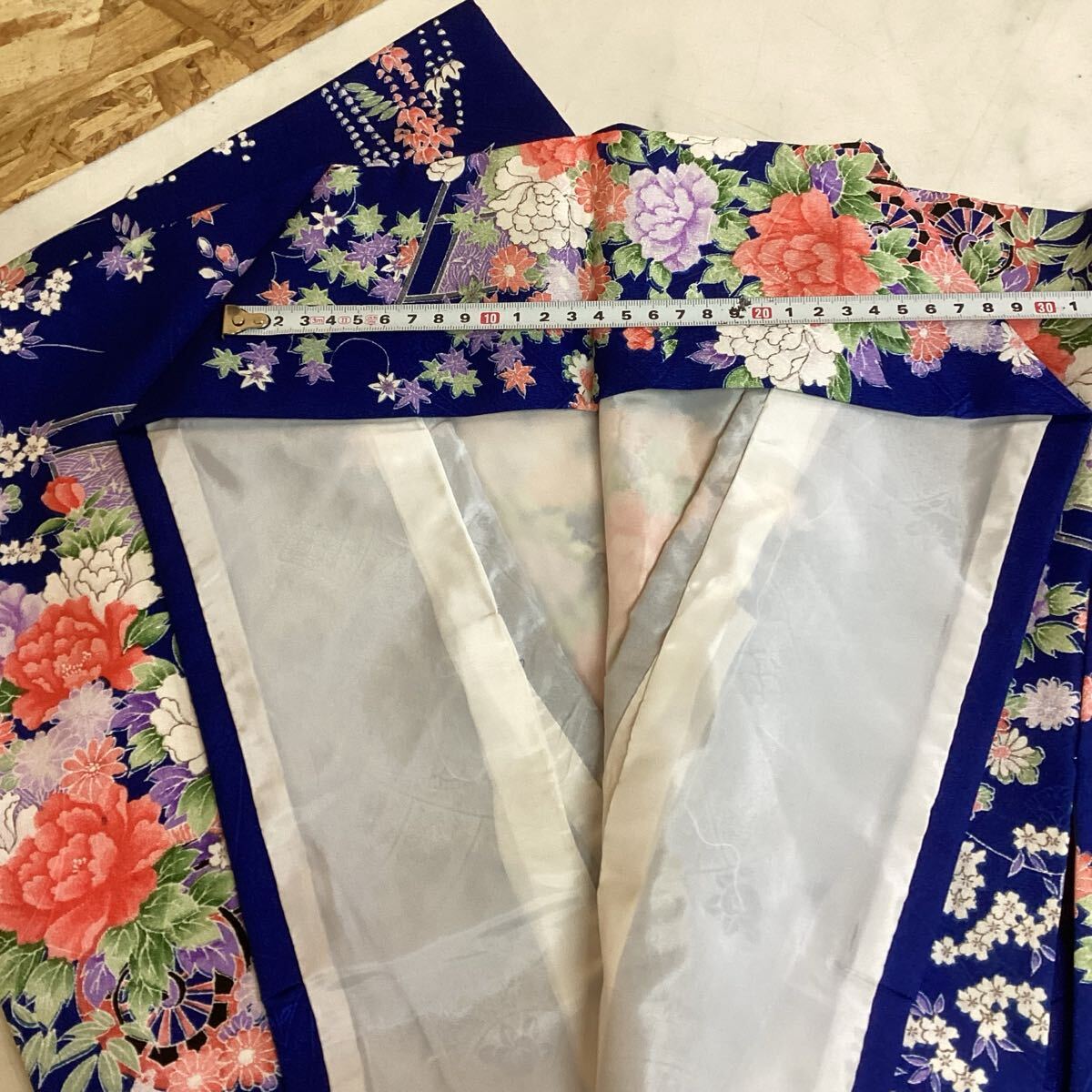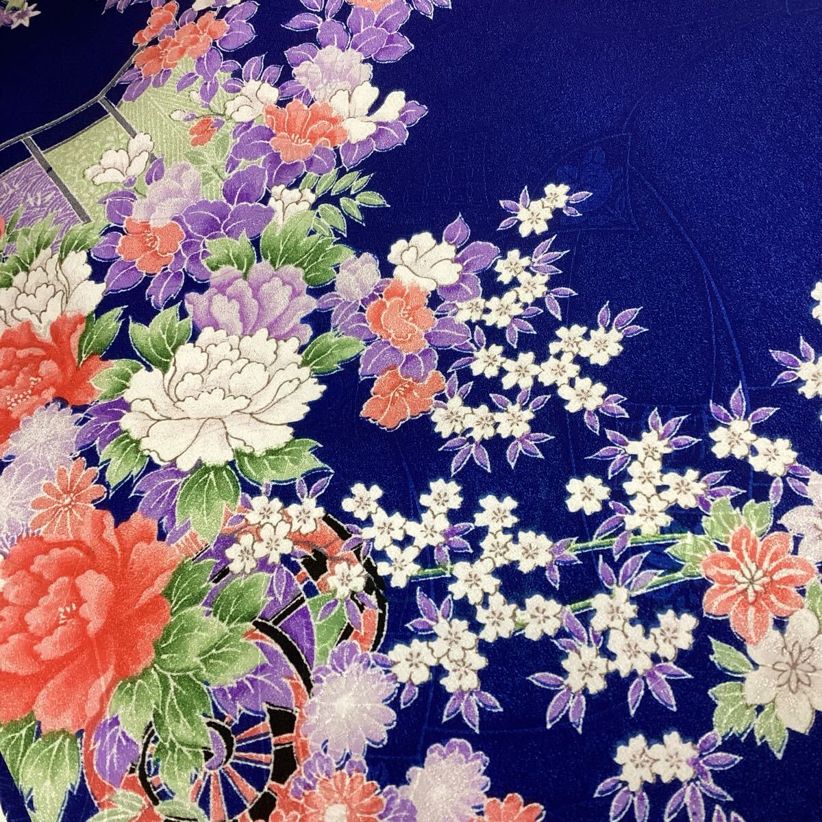 和装 着物 ブルー カラフルな花柄 鮮やか 綺麗な色 エレガント (ぬ38)