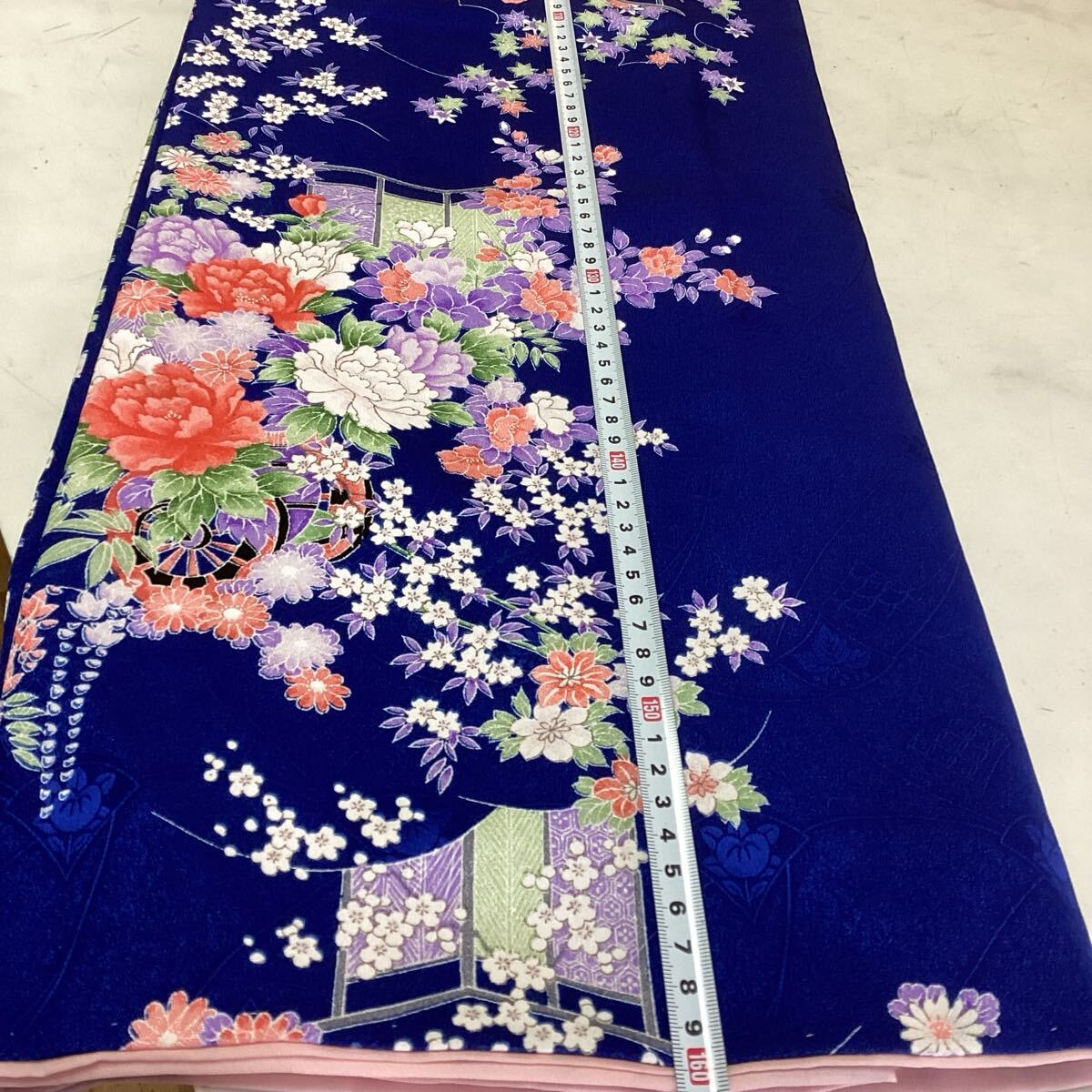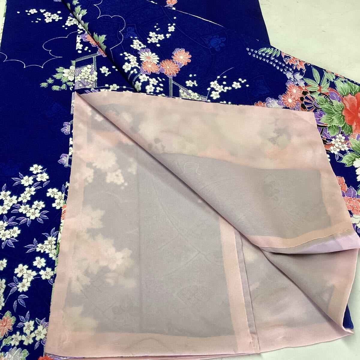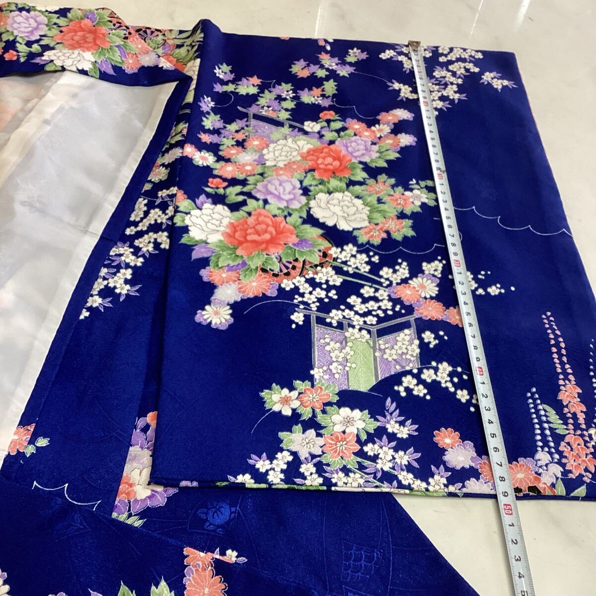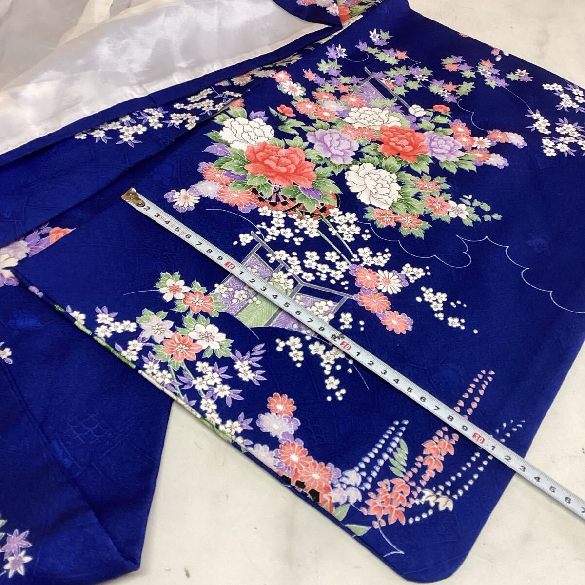 和装 着物 ブルー カラフルな花柄 鮮やか 綺麗な色 エレガント (ぬ38)