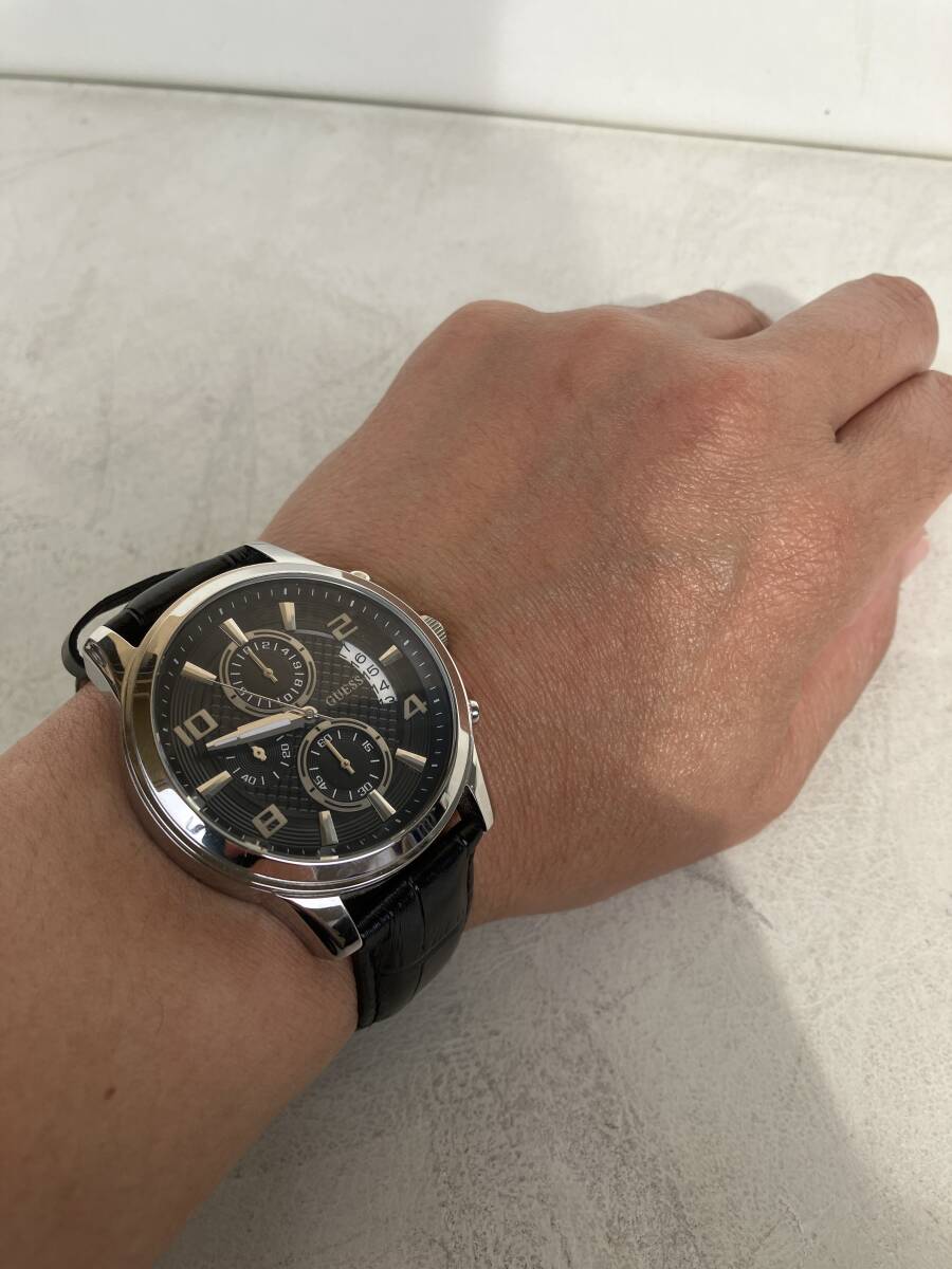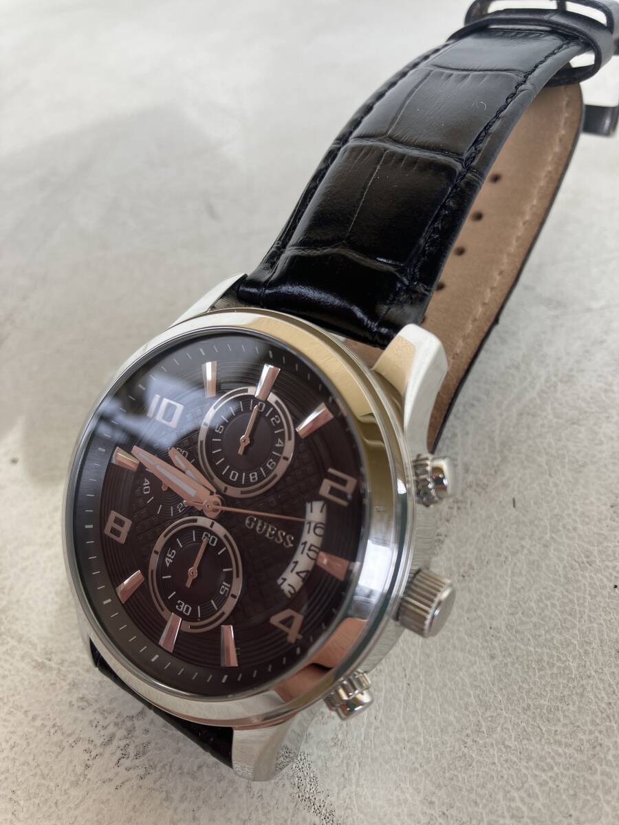 即決 GUESS ゲス メンズ腕時計 腕時計 時計 w0075G1 防水 デイトナ デイト クォーツ QZ クロノグラフ 革ベルト 日本製ムーブメント 稼働中