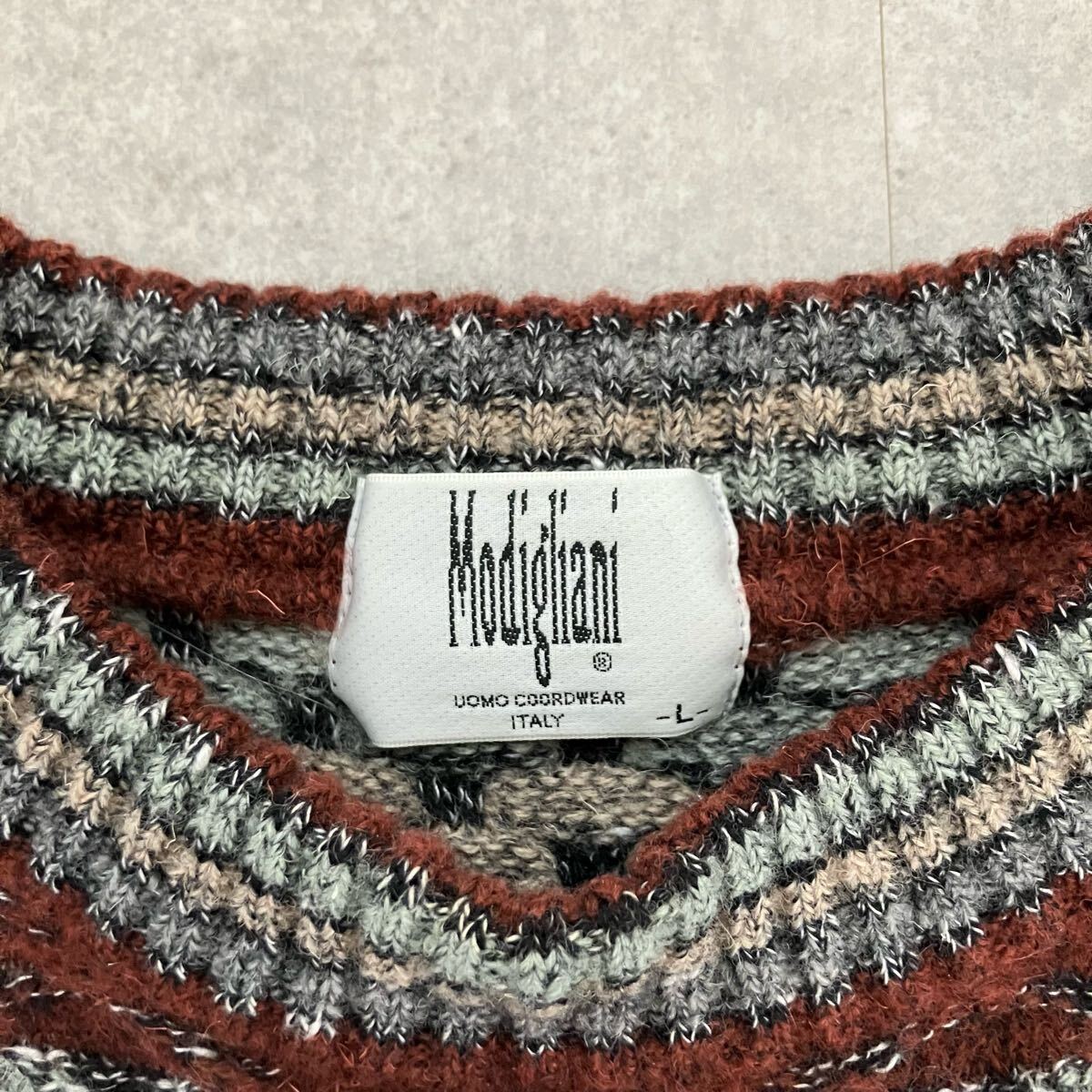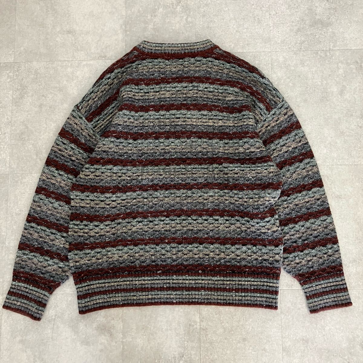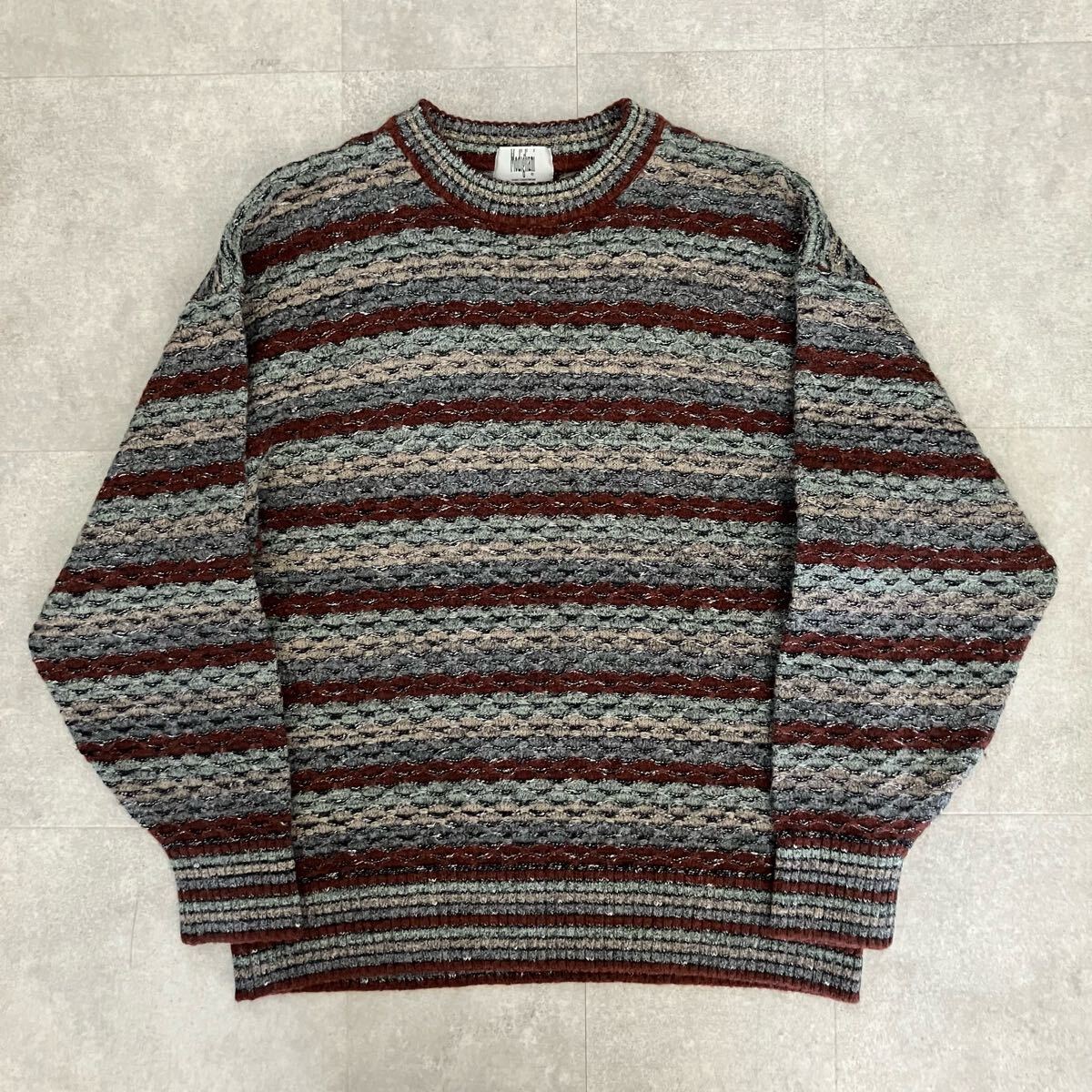 ●人気!90s 00s Modigliani モディリアーニ 3D ニット セーター/編み込み/ボーダー柄/size(L)/メンズ