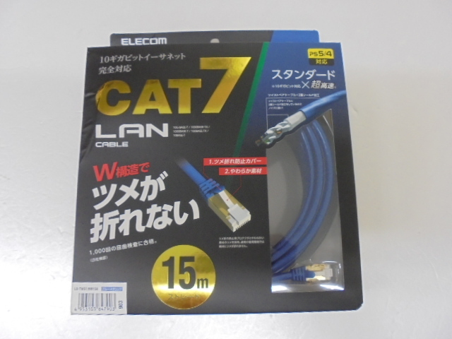 【KCM】KDN-107★新品・箱傷み★ELECOM/エレコム CAT7対応 LANケーブル 15m ブルーメタリック スタンダード ツメ折れ防止 LD-TWST/BM150