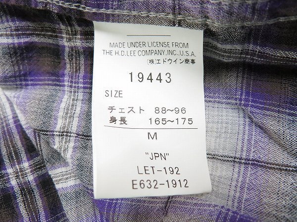 | アイテム名 | Lee チェックウエスタンシャツ 19443 |