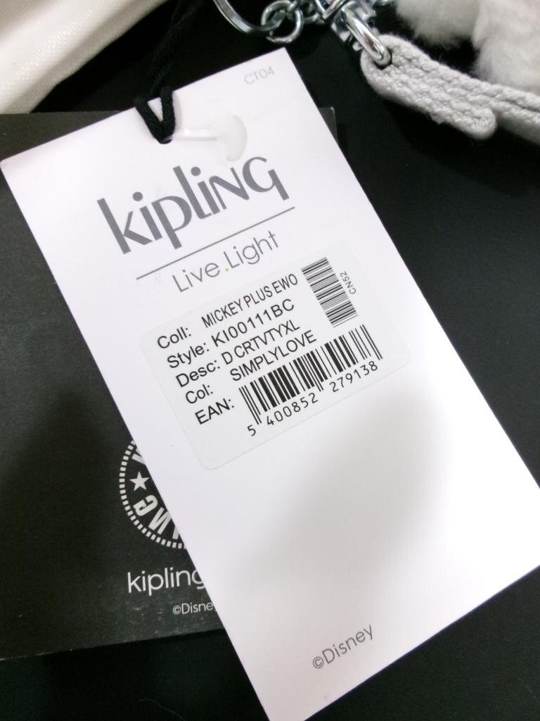 【送料込】[新品] Kipling キプリング×ミッキー&ミニー MICKEY PLUS EWO/KI00111BC ポーチ 白ホワイト ファスナー開閉 /n969233