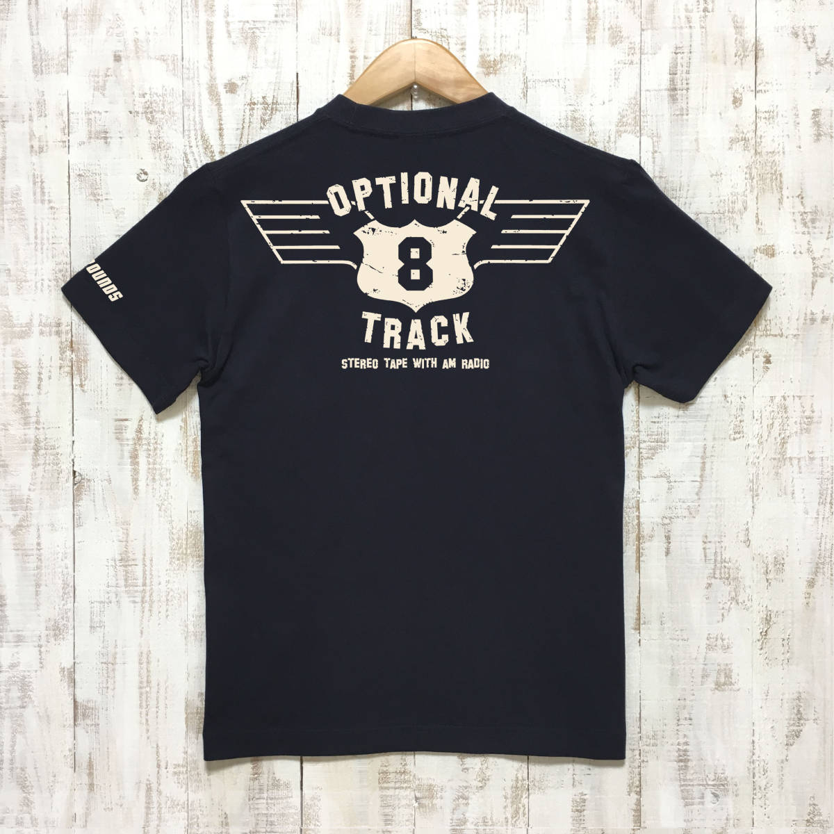 ■ OPTIONAL 8TRACK Tシャツ■Lサイズ(ネイビーxナチュラル)アメ車 アメリカ シボレー ダッジ フォード モパ-