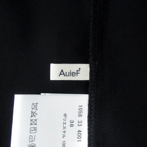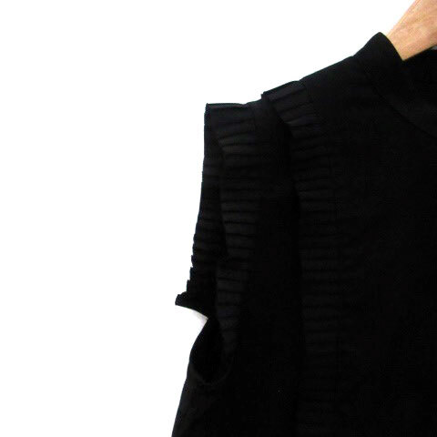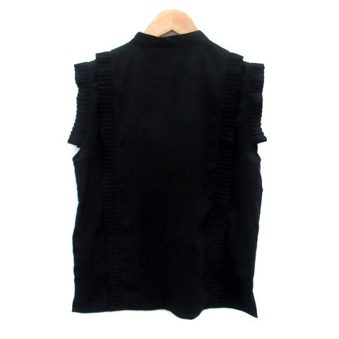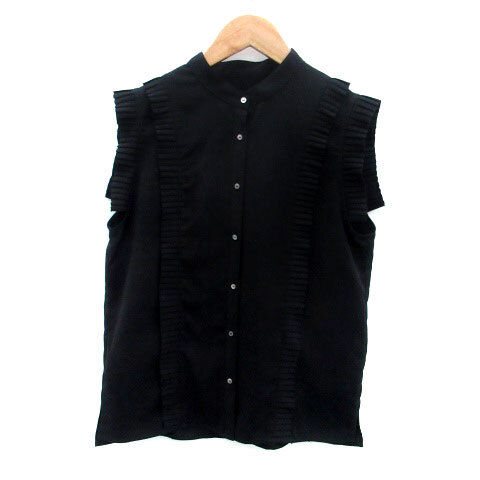 アウィーエフ AuieF シャツ ブラウス バンドカラー ノースリーブ プリーツ 無地 38 M 黒 ブラック /HO43 レディース