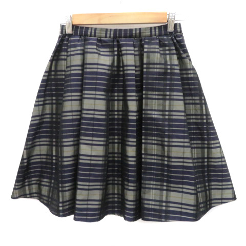 ロッソ ROSSO アーバンリサーチ フレアスカート ギャザースカート ひざ丈 チェック柄 36 S マルチカラー 紺 ネイビー /YK2 レディース