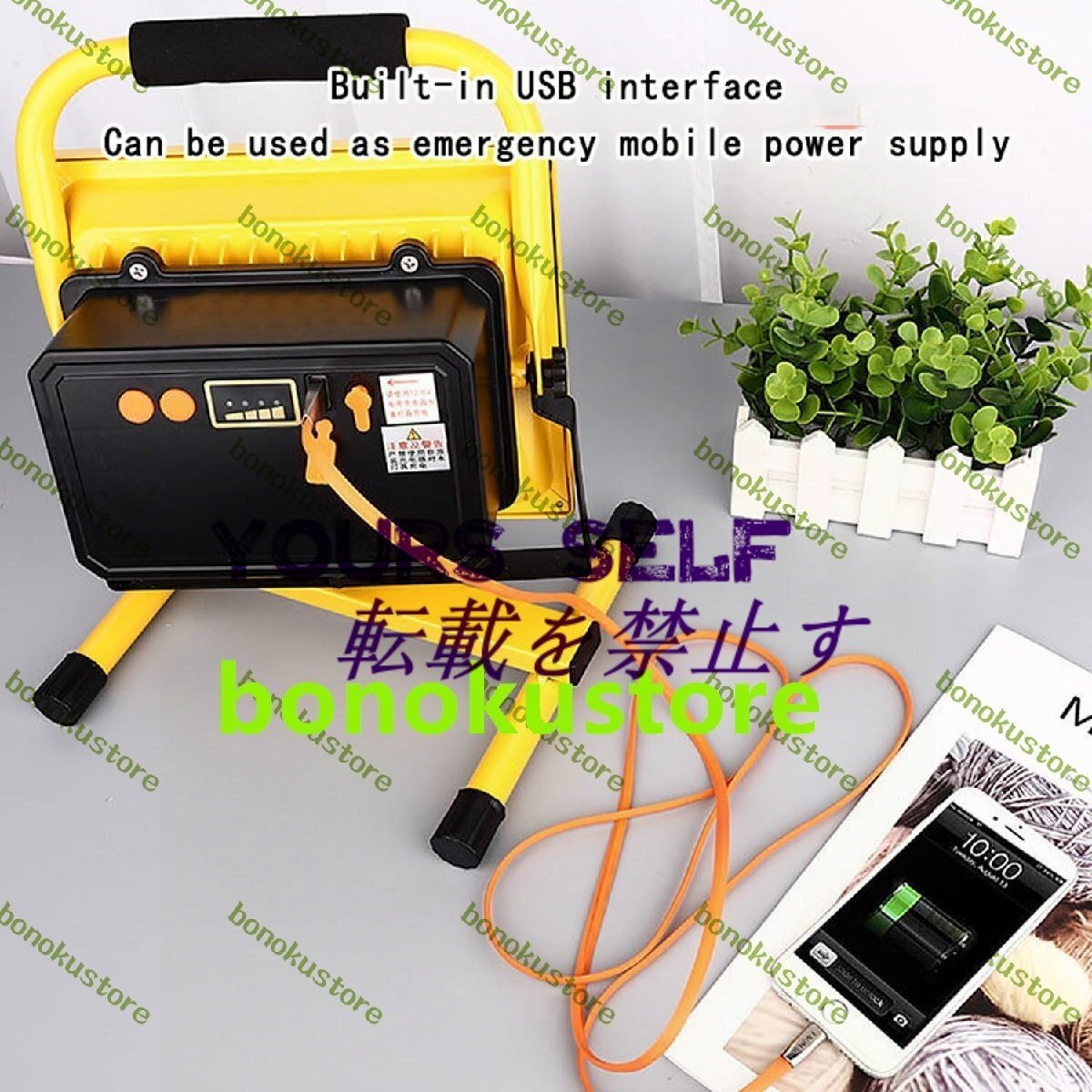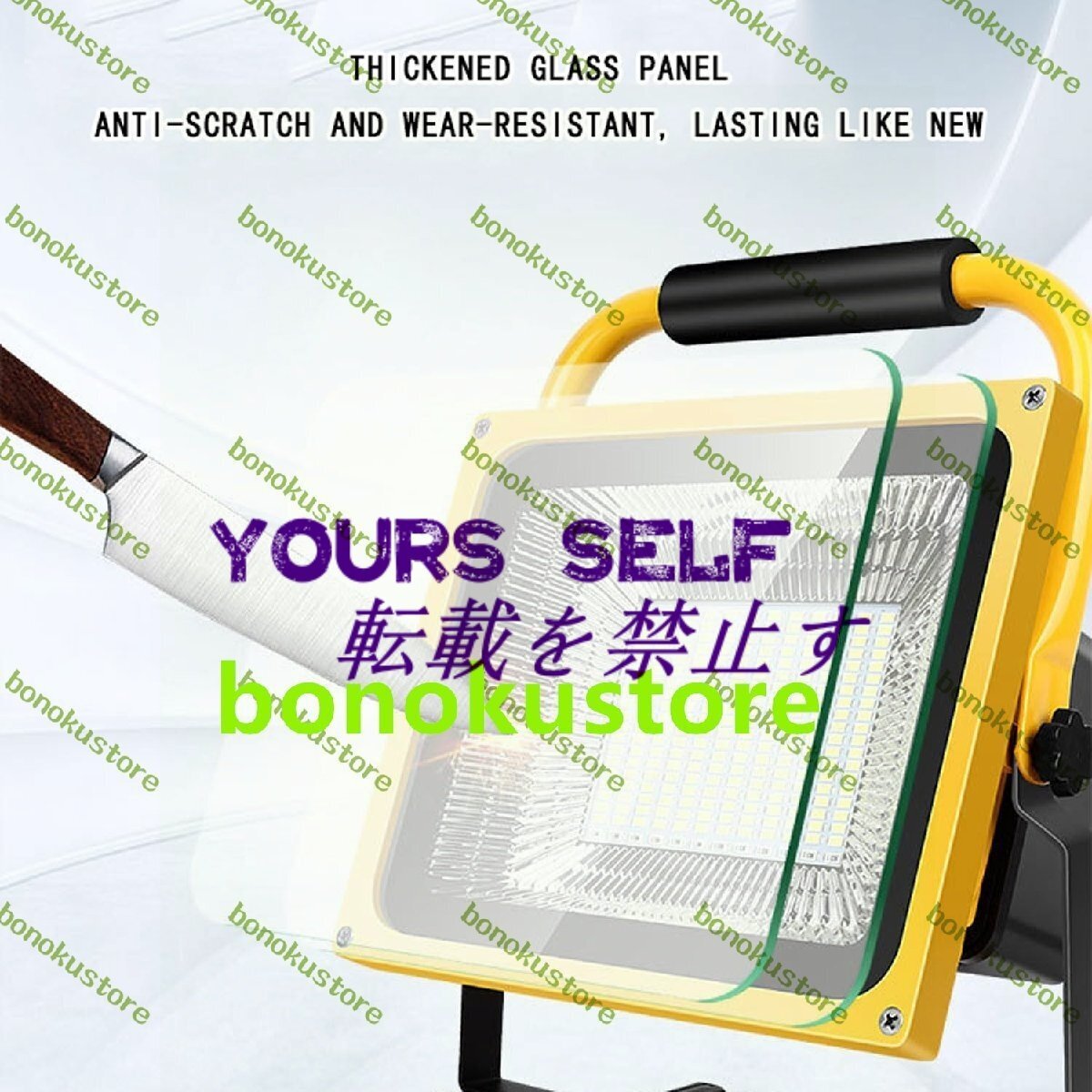 名前: 屋外 LED 作業灯 電力: 1200W 材質: アルミニウム + ABS + PC 色温度:3000K~8000K(クールホワイト)、9000ルーメン、LEDビーズ240個、ビーム角:120° 調光:4段階 バッテリー: 18650mAh 包装内容明細書: LED投光器×1