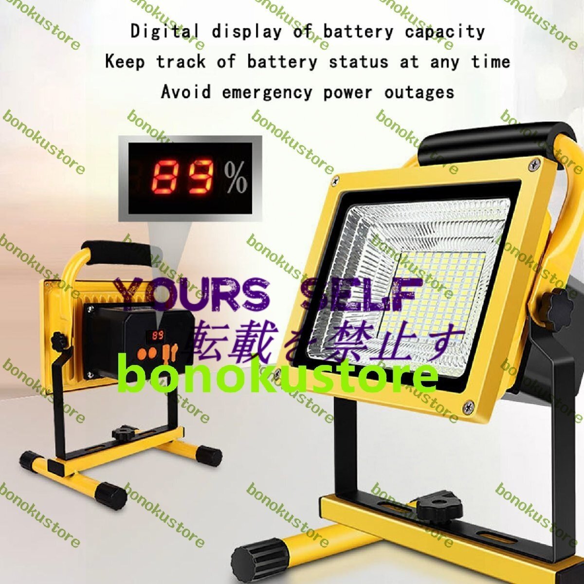 1200W LED充電式ワークライト、デジタルディスプレイ防水ポータブル投光器、USBインターフェース付き、内蔵18650mAhバッテリー、テントランタン/パティオ/庭/停電用(10-30H)