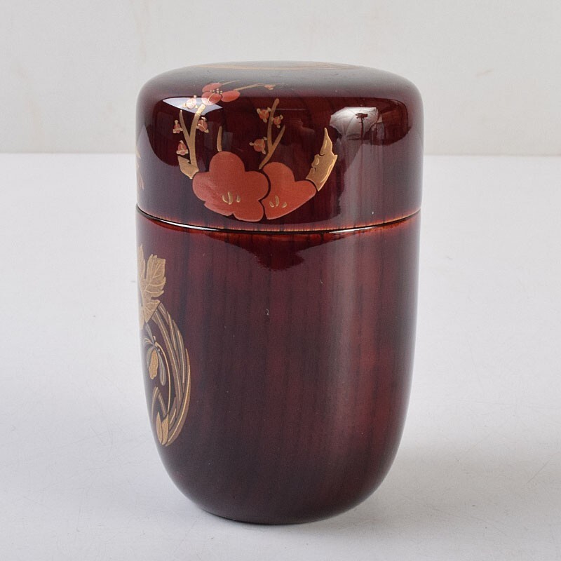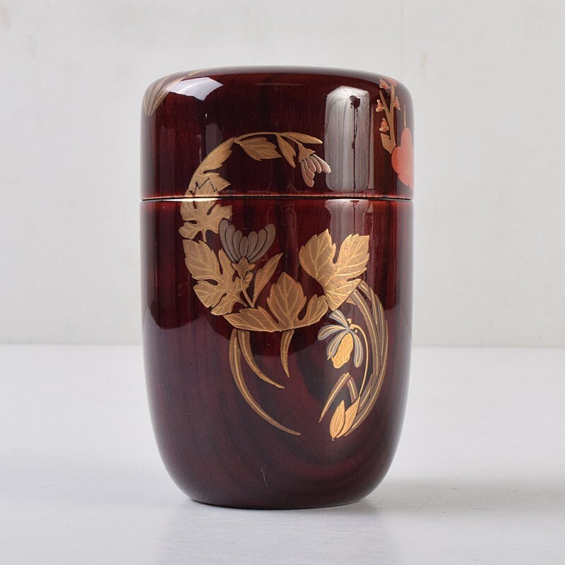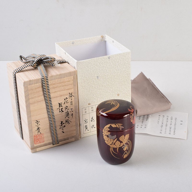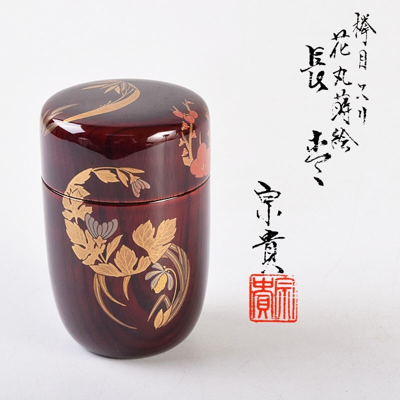 茶道具 輪島塗 蒔絵師 北浜宗貴作 﨔目すり 花丸文 長棗 共箱 MQZU