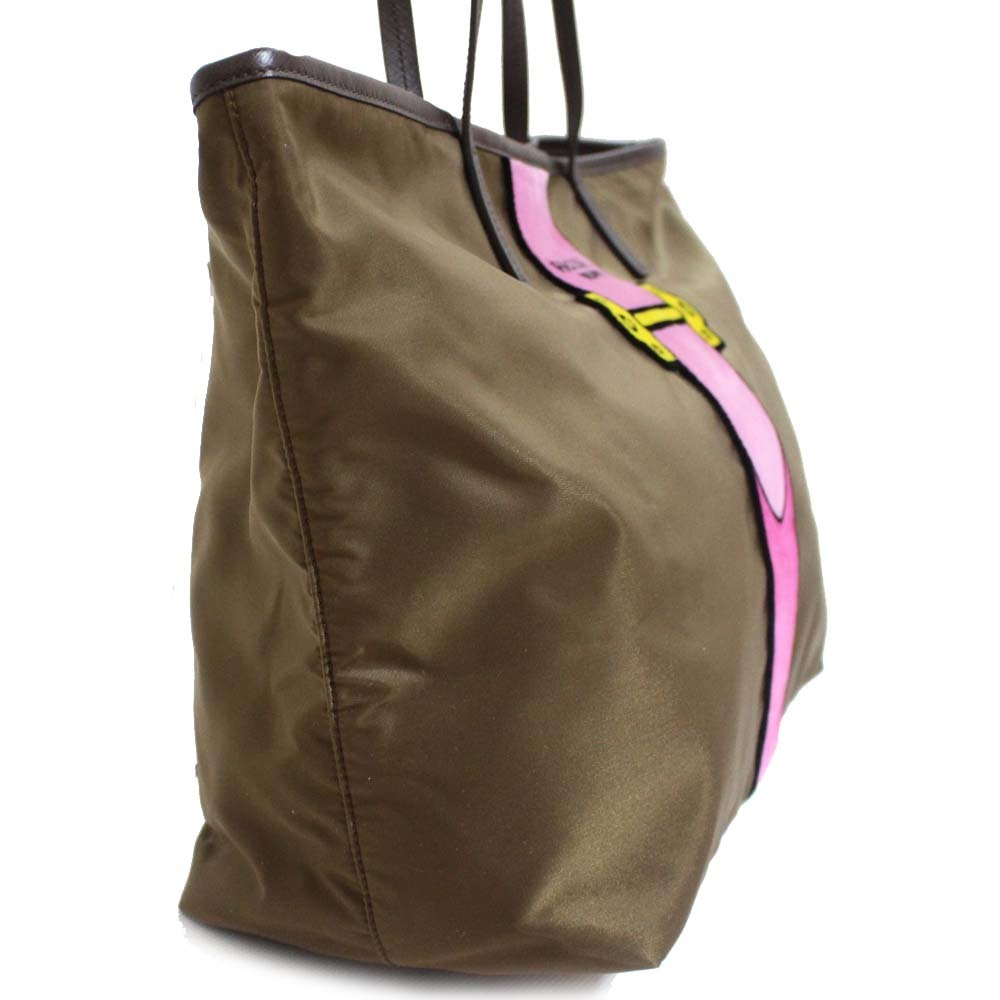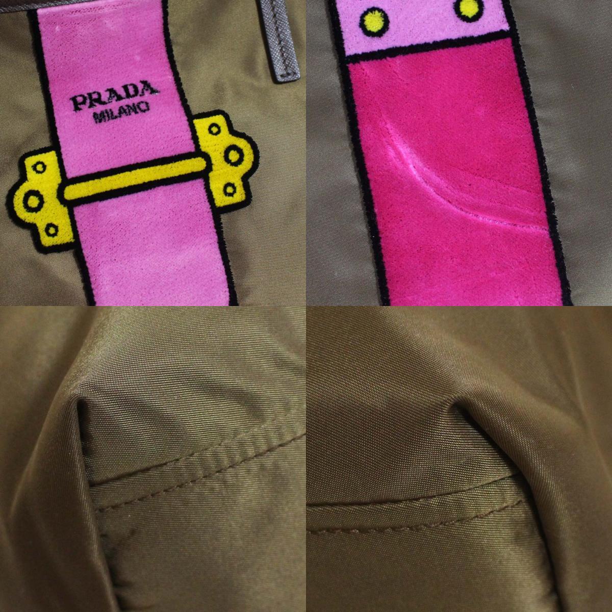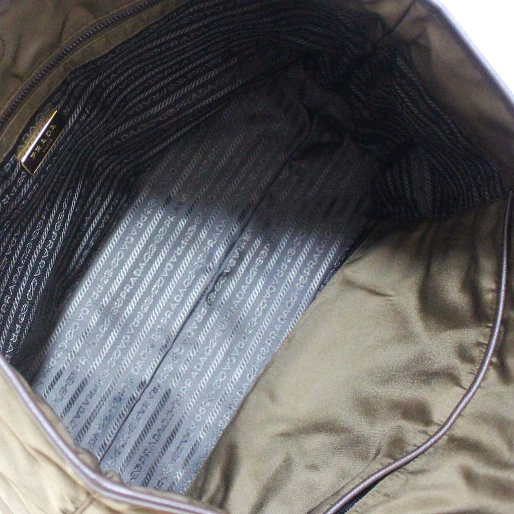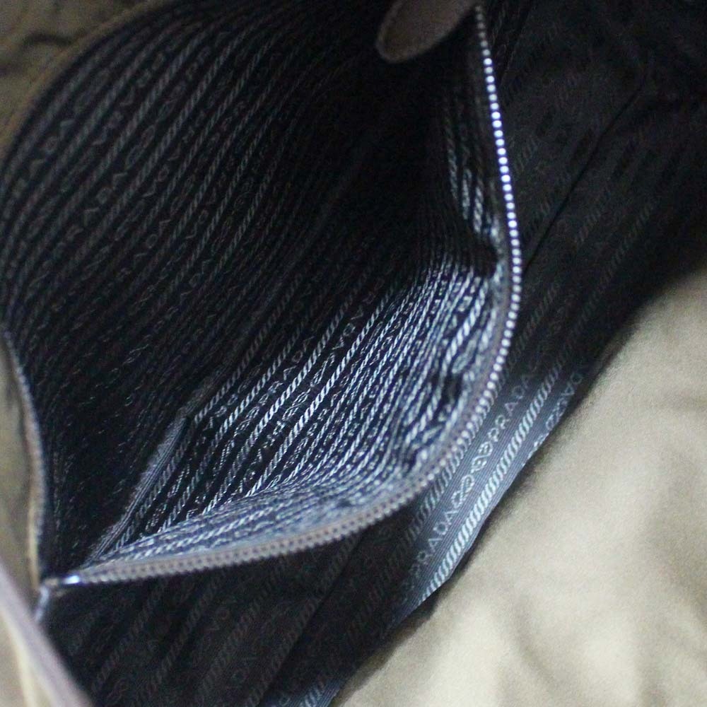 プラダ カイエ トロンプルイユ トートバッグ レディース ナイロン ベルベット カーキ 1BG065 中古 送料無料 PRADA