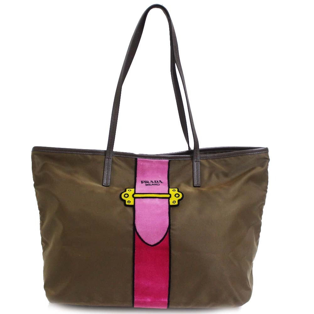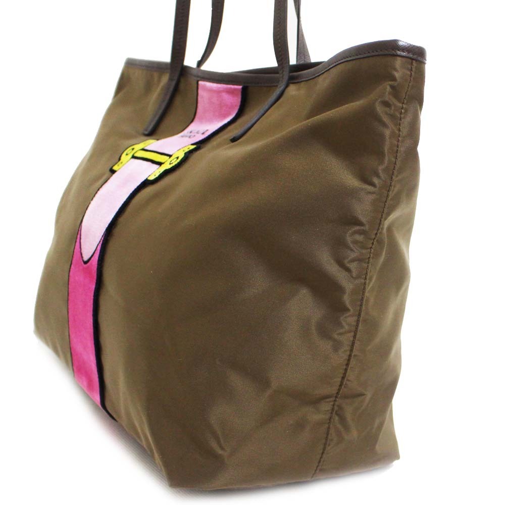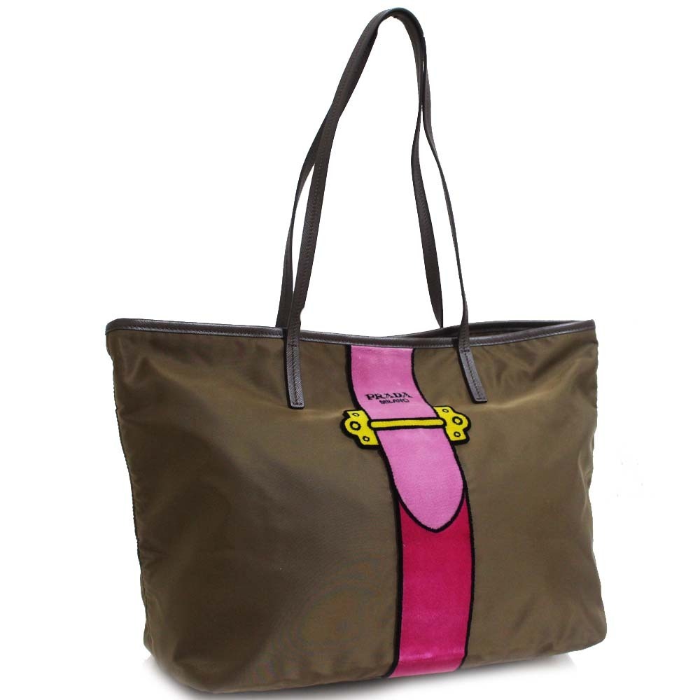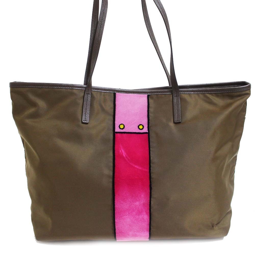 プラダ カイエ トロンプルイユ トートバッグ レディース ナイロン ベルベット カーキ 1BG065 中古 送料無料 PRADA