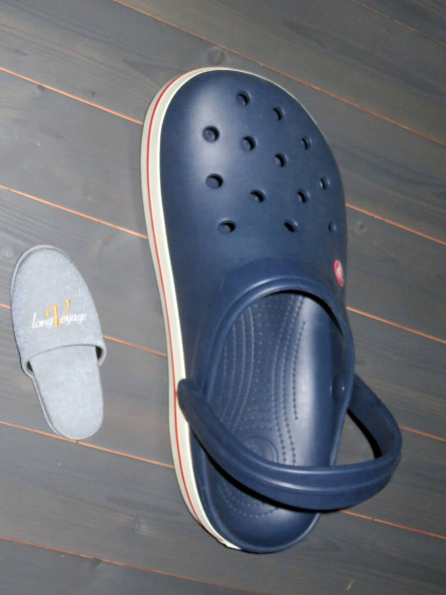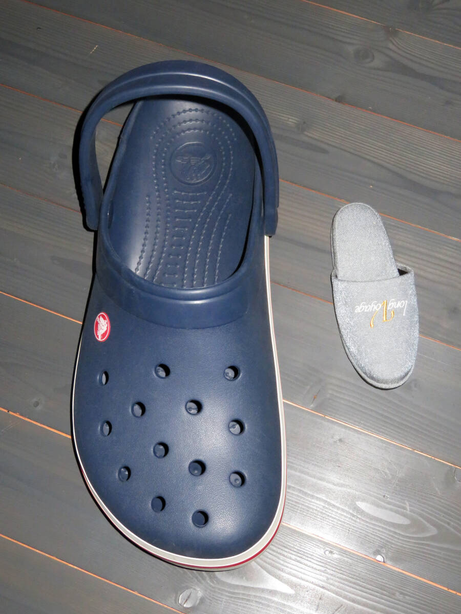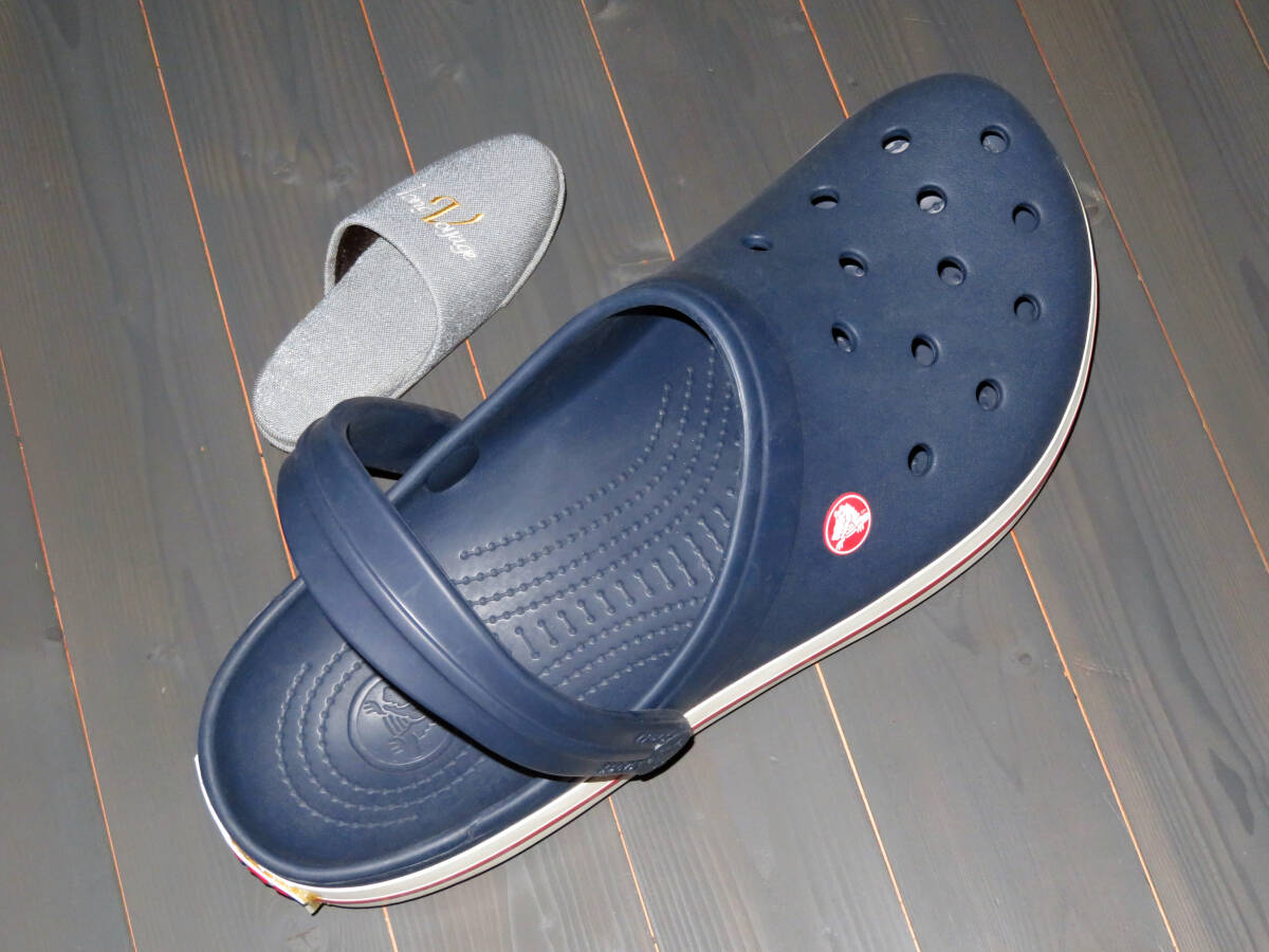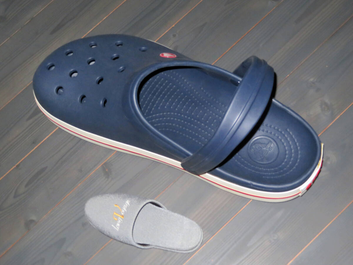 大きさをわかりやすくするために、Mサイズのスリッパを横に並べています。