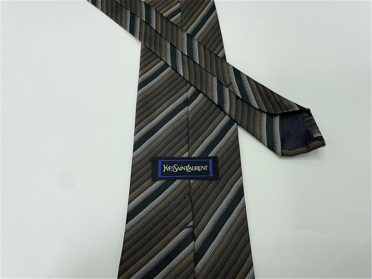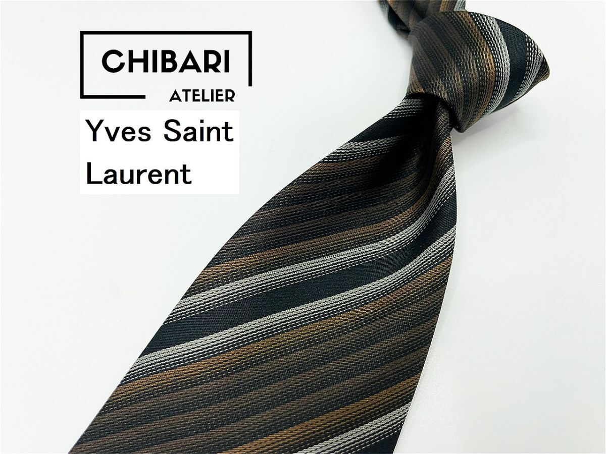 【美品】YvesSaintLaurent サンローラン レジメンタル柄 ネクタイ 3本以上 送料無料 メンズ ブラウン 0404113