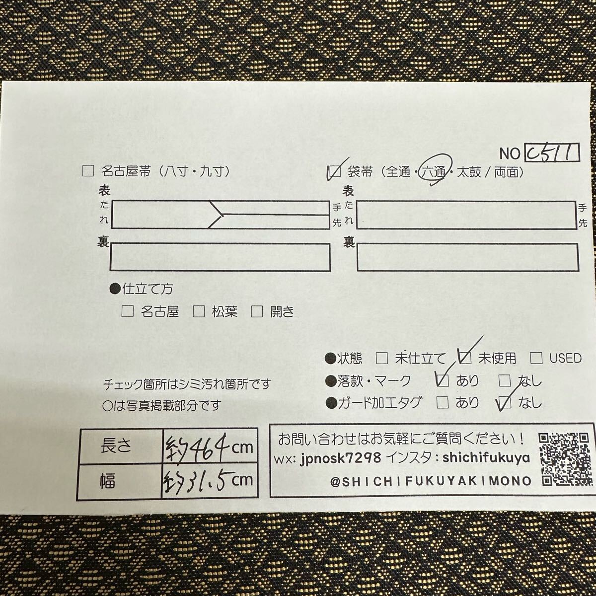 【七福】c511 逸品 高級品 正絹 袋帯 六通 誉田屋源兵衛 純金 金糸 豪華